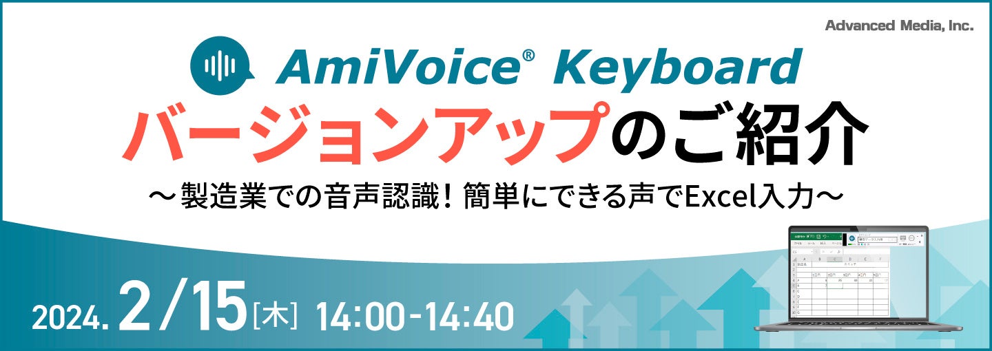 2024年2月15日(木)、オンラインセミナー「AmiVoice Keyboardバージョンアップのご紹介~製造業での音声認識!簡単にできる声でExcel入力~」を開催いたします。