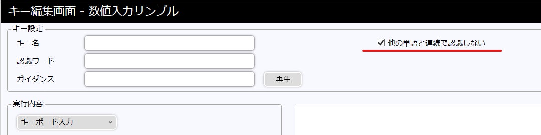 (旧)only属性→(新)「他の単語と連続で認識しない」を選択した場合、連続発話を禁止