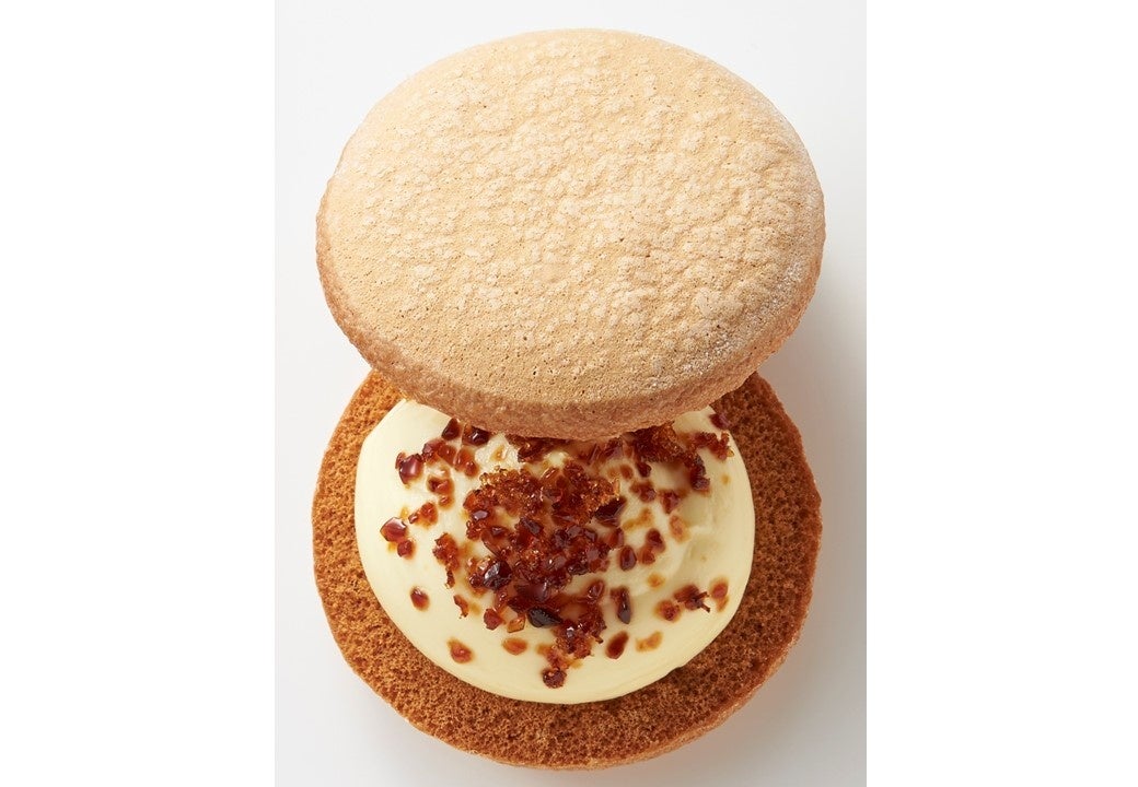 ふんわりと焼き上げたやわらかなビスキュイに2層のプリン風味のクリームをサンド。ほろ苦いキャラメリゼと絶妙なバランス。