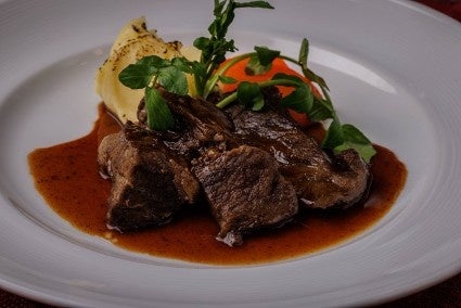 選び抜いた牛頬肉を赤ワインで長時間煮込み旨味を閉じ込めながらやわらかく仕上げました。なめらかに仕立てたマッシュポテトや丁寧にカットした人参ロンデルが彩りとほのかな甘みを添えてくれます。