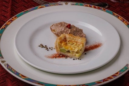 旬野菜を使用したキッシュと、牛肉の旨みを凝縮したパテの盛り合わせ。