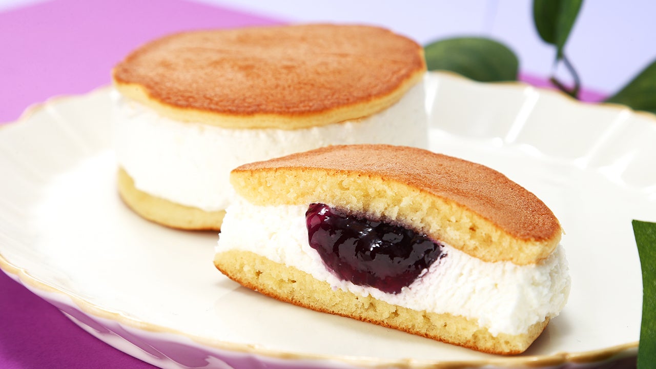 もちもちとしたどら焼きでレアチーズ風味のホイップクリームとブルーベリージャムをサンドした爽やかな風味の生どら焼きです。さっぱりとした後味なので、暑い季節にもぴったりです。