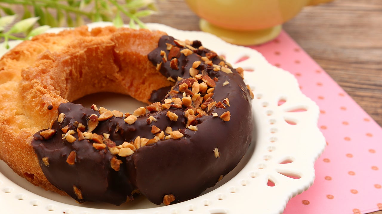 なじみ深いオールドファッションにチョコをかけて、ローストアーモンドをトッピングしました。アーモンドの香ばしさがアクセントになっています。