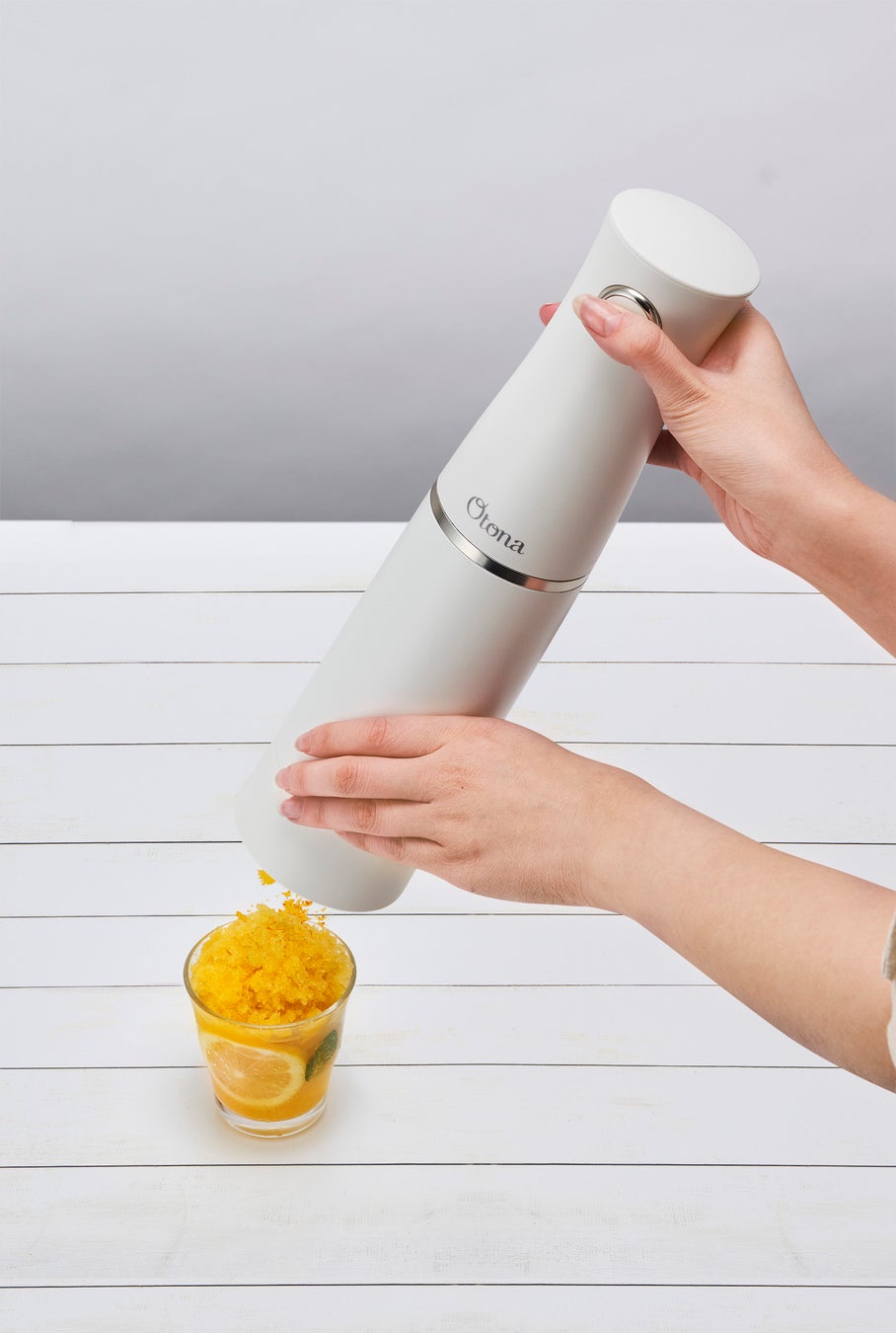 スティックタイプのため、器の大きさを選びません。大きいお皿や、背の高いグラスにも氷を削ることができるため、かき氷以外にもアレンジが広がります。