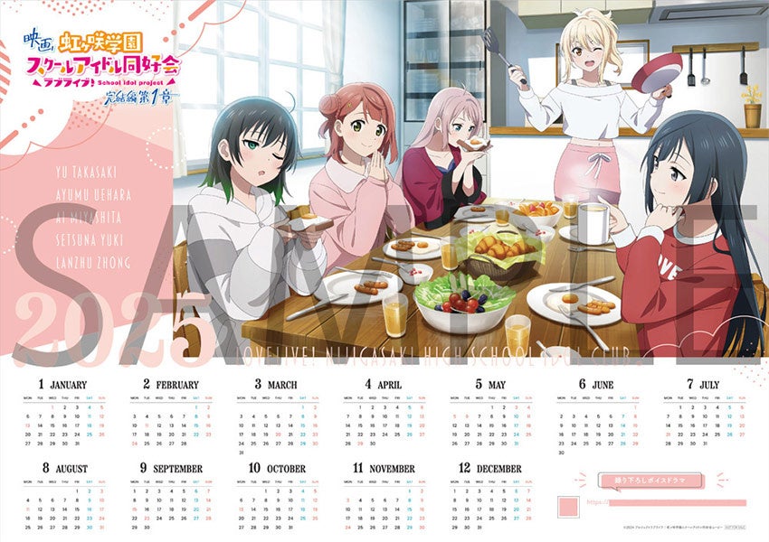 対象店舗にて映画『ラブライブ!虹ヶ咲学園スクールアイドル同好会 完結編 第1章』Blu-rayをご購入いただいた方を対象に描き下ろしイラスト使用の“A4クリアファイル”と“ボイスドラマつきカレンダーポスター(約A3サイズ)“がプレゼントされます。描き下ろしイラストは、1年生ver.、2年生ver.、3年生ver.の3種類で、対象店舗はそれぞれ異なります。詳細は、作品公式サイトの商品情報ページ(https://www.lovelive-anime.jp/nijigasaki/bd_movie.php)を
