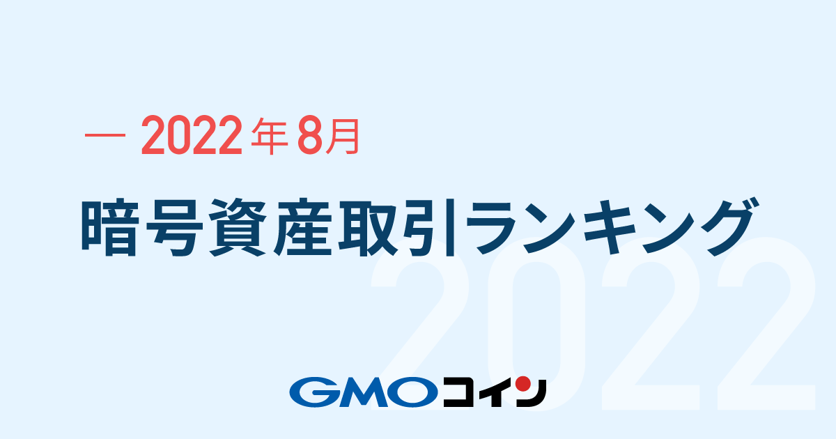 暗号資産取引のGMOコイン:2022年8月の暗号資産(仮想通貨)取引ランキングをご紹介