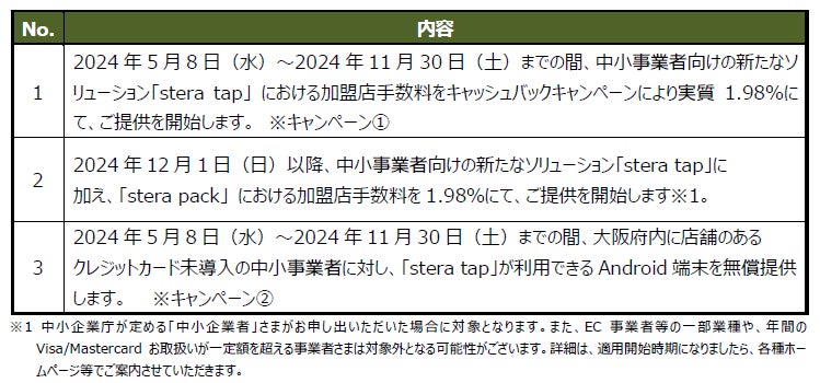 そして、このたび、「stera pack」を中心としたキャッシュレス決済の更なる普及拡大をねらい、中小事業者向けに手数料を大幅に見直し、加えて大阪府内のキャッシュレス普及のために、端末配布策を実施します。