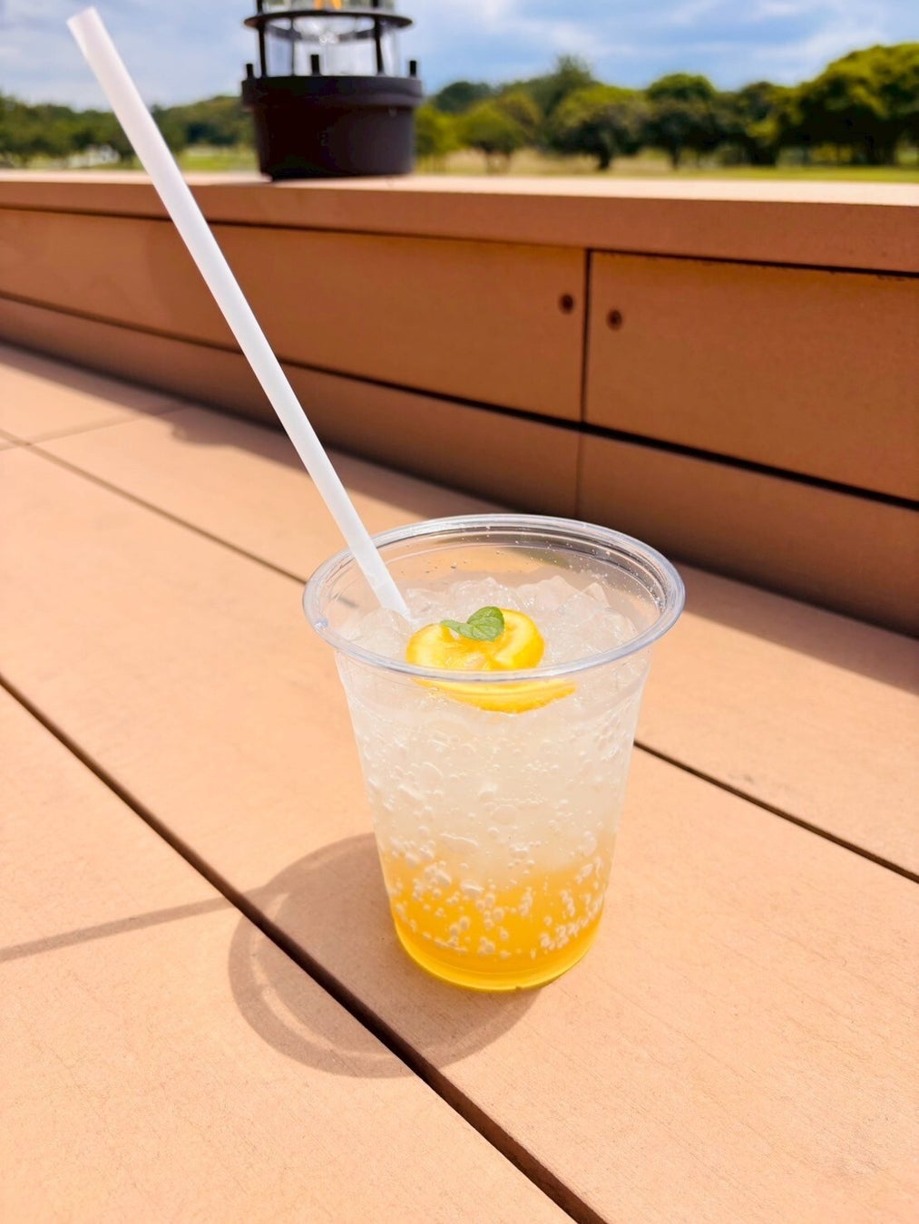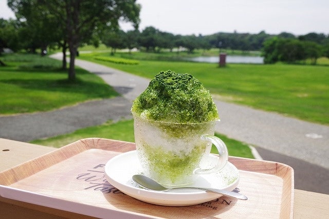 コキアの並ぶ先にある‘PlayCafe’では、コキアそっくりな‘かき氷抹茶’や、オリジナル夏レスカなどのひんやりスイーツ&ドリンクを販売中。テラス席で可愛いコキアを眺めながら夏の風を感じ、ほっと一息つく時間を過ごせます。
