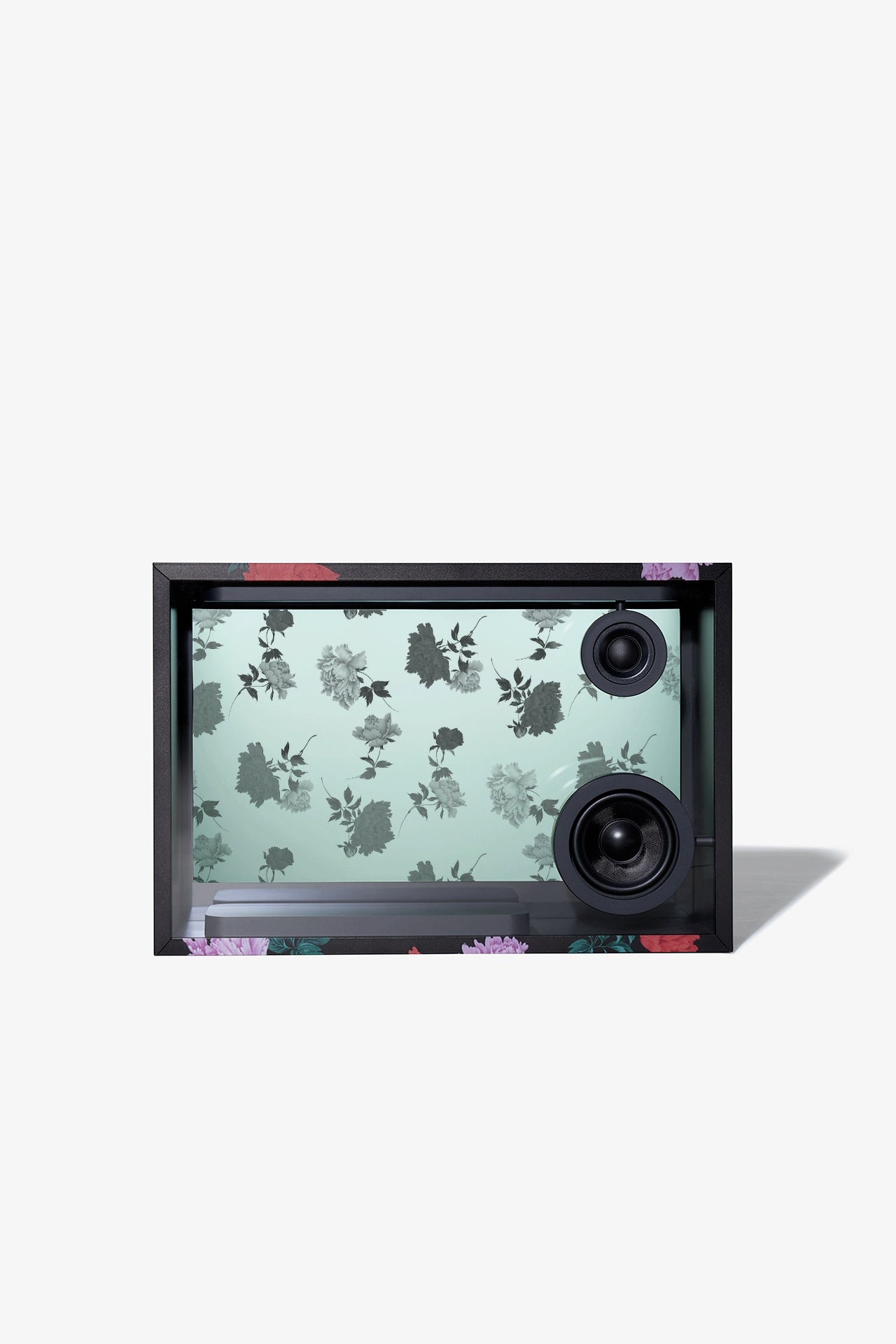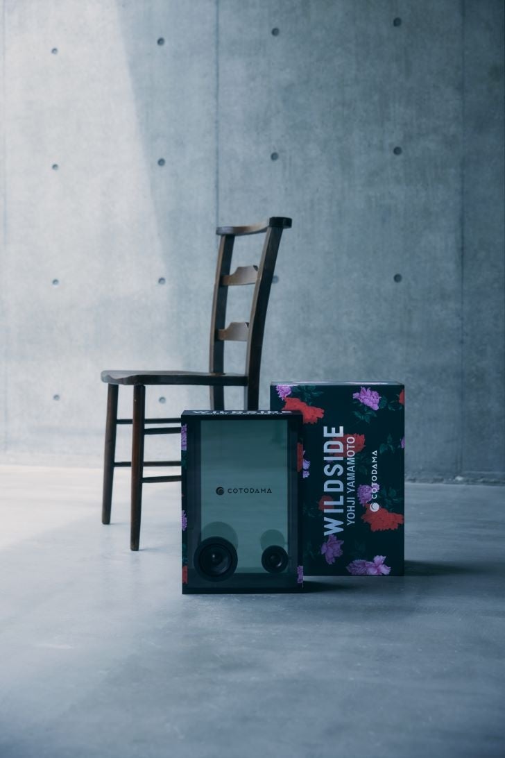 本コラボレーションでは、COTODAMAが手掛けるLyric SpeakerのWILDSIDEモデルを製作。Yohji Yamamotoのアイコニックなモチーフである牡丹の花を本体と外箱に大胆にプリントし、本モデルのリミテッドエディションとして、スタンバイスクリーンに牡丹の花が映し出されます。また、広い音域の音を再生可能な2ウェイバスレフ型スピーカーを設計、キャビネットには余分な歪振動の少ないアクリル板を採用し、美しい音鳴りのスピーカーを実現。