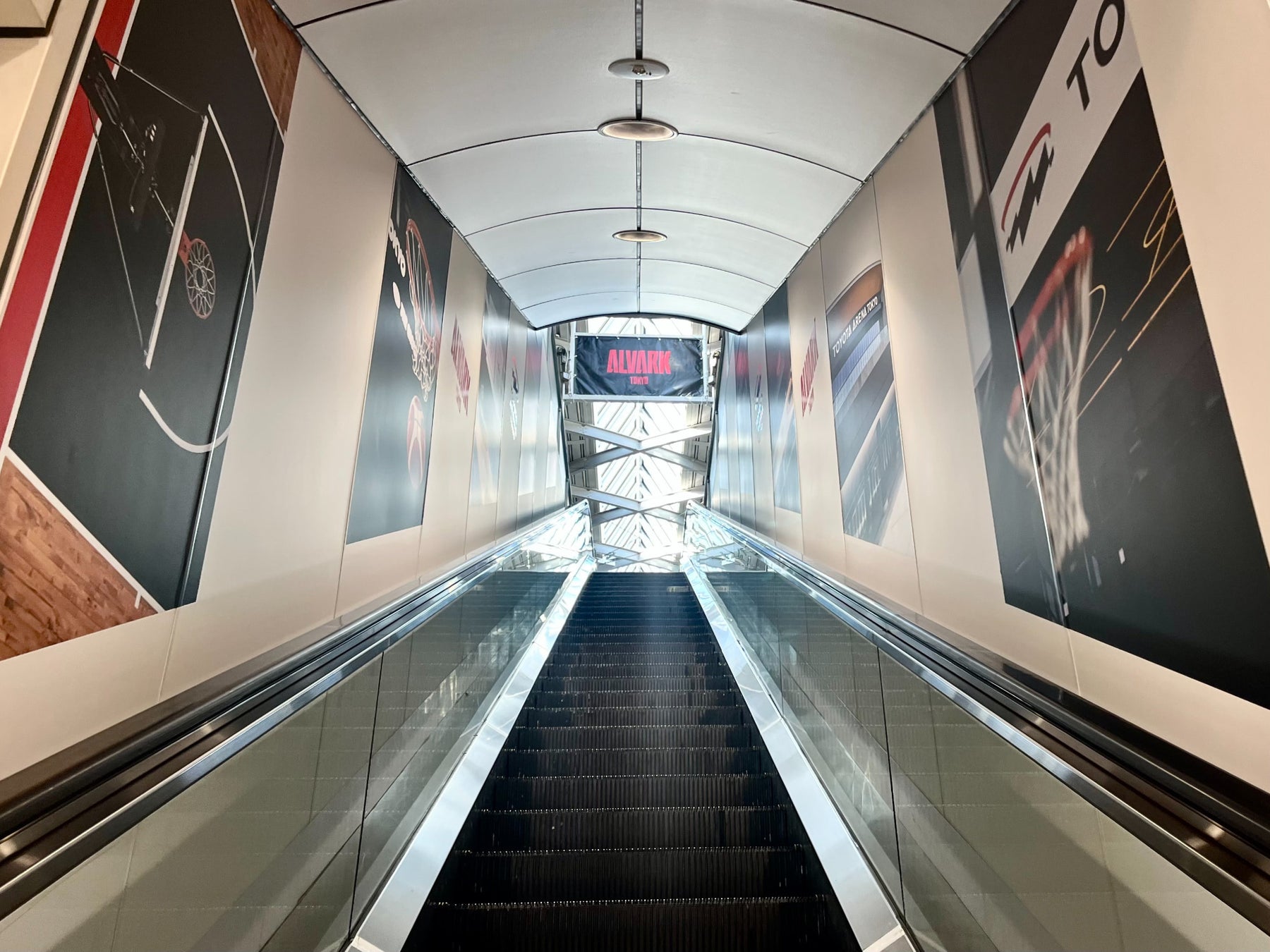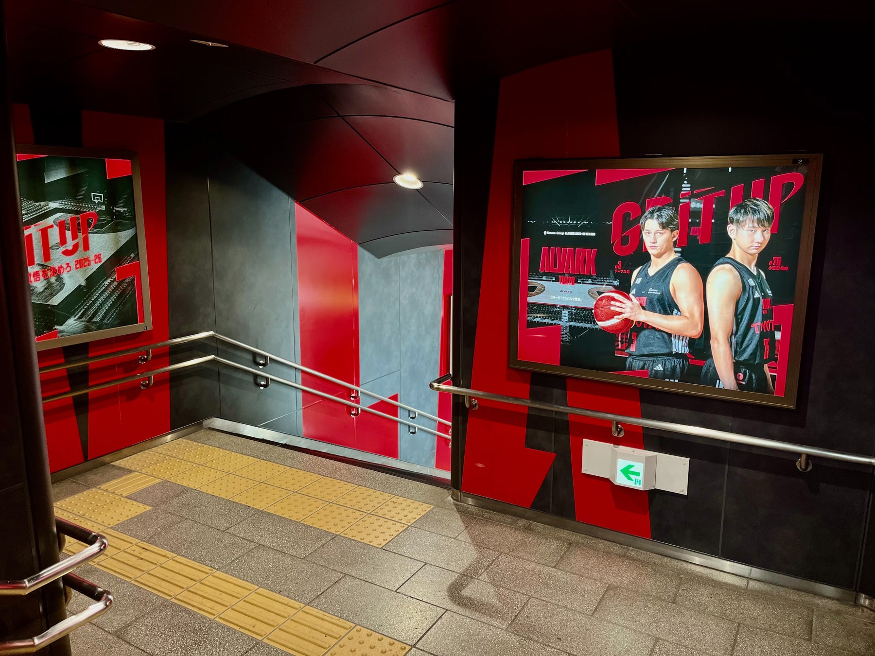 駅構内はアルバルク東京のクラブカラーの黒と赤を基調に、アルバルク東京の選手やマスコット「ルーク」、また「TOYOTA ARENA TOKYO」の外観・内観写真などで装飾いただきます。ホームに降り立った瞬間から期待が高まる、行きも帰りも楽しめる駅になります。