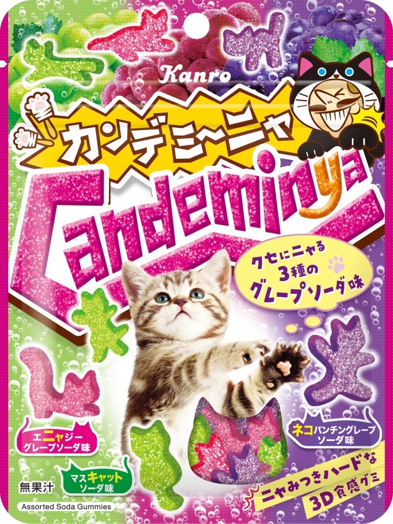 2月22日の「猫の日」にちなんで今年も登場!ニャみつきハードな3D食感ネコ型グミカンロ 「カンデミーニャグミ」 新発売