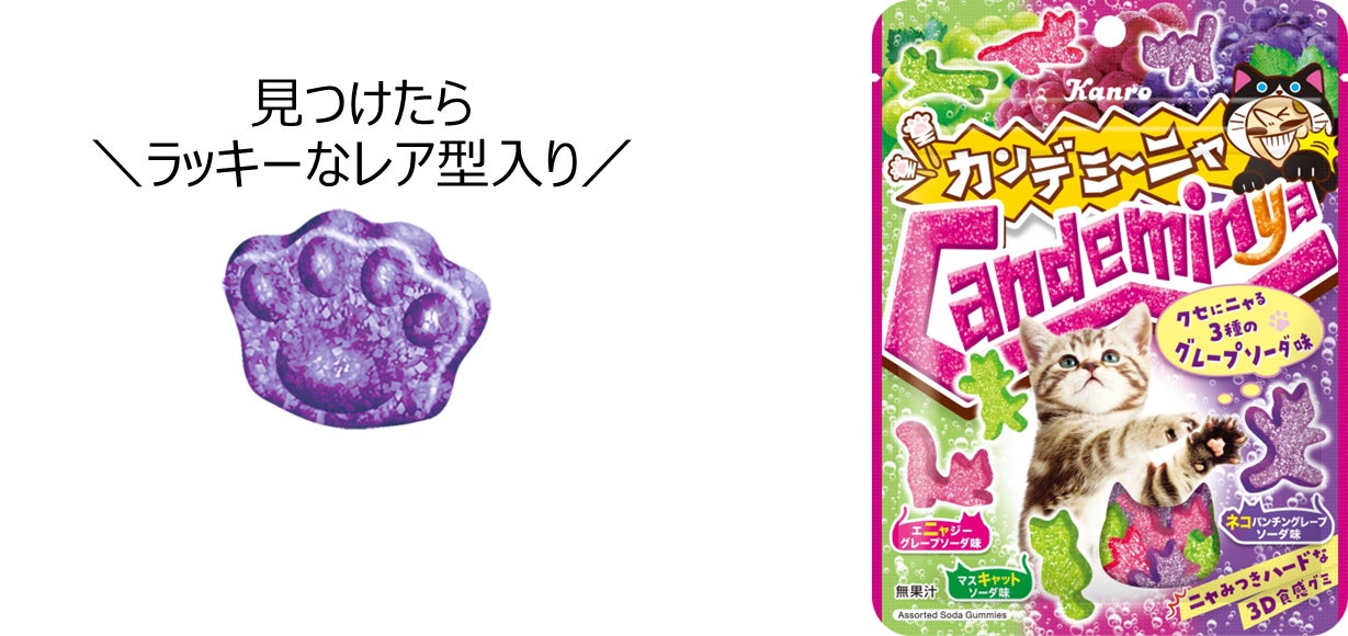 《ネコにちなんだ(!?)3種のぶどう味!ネコにとことんこだわった「カンデミーニャ」が、レア型入りで新登場!》