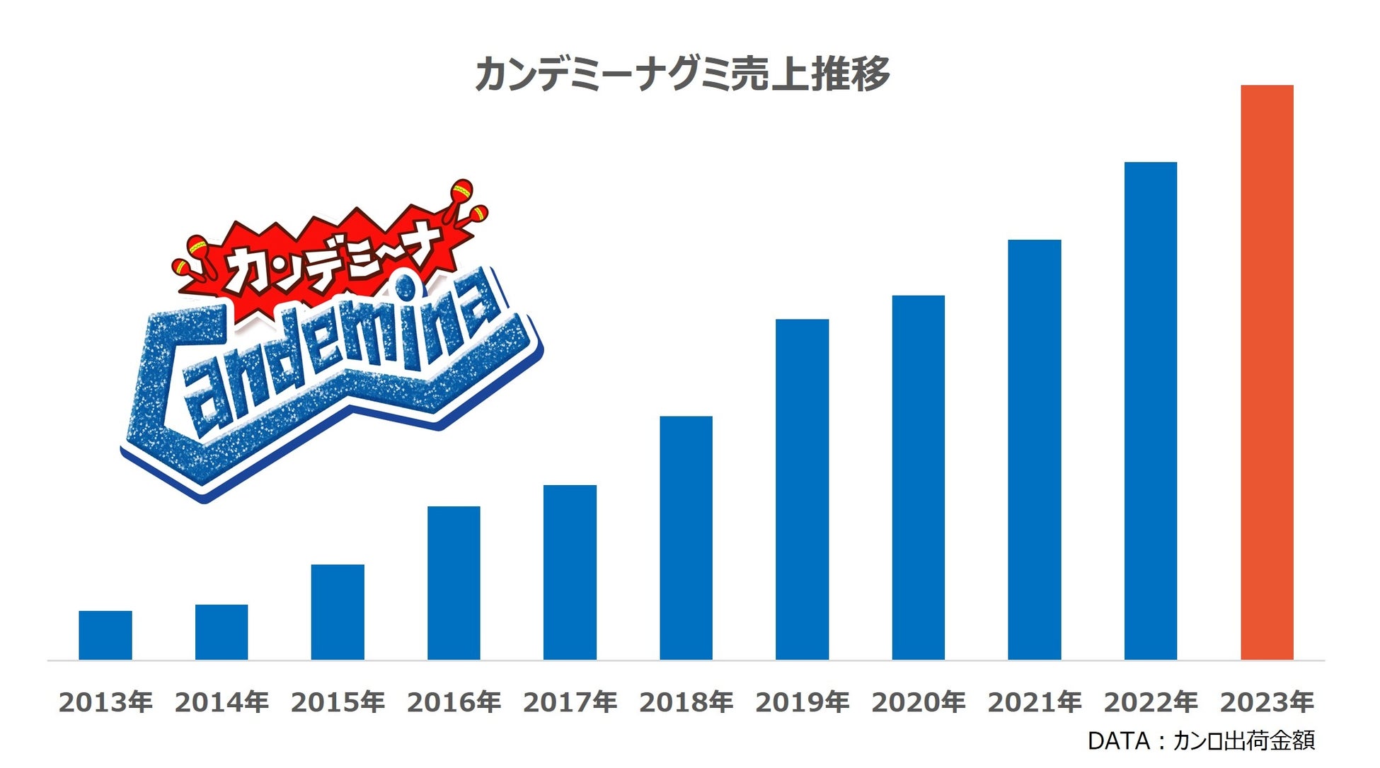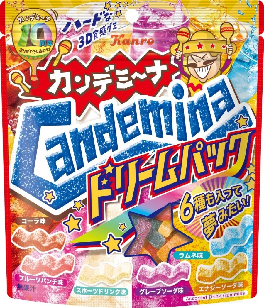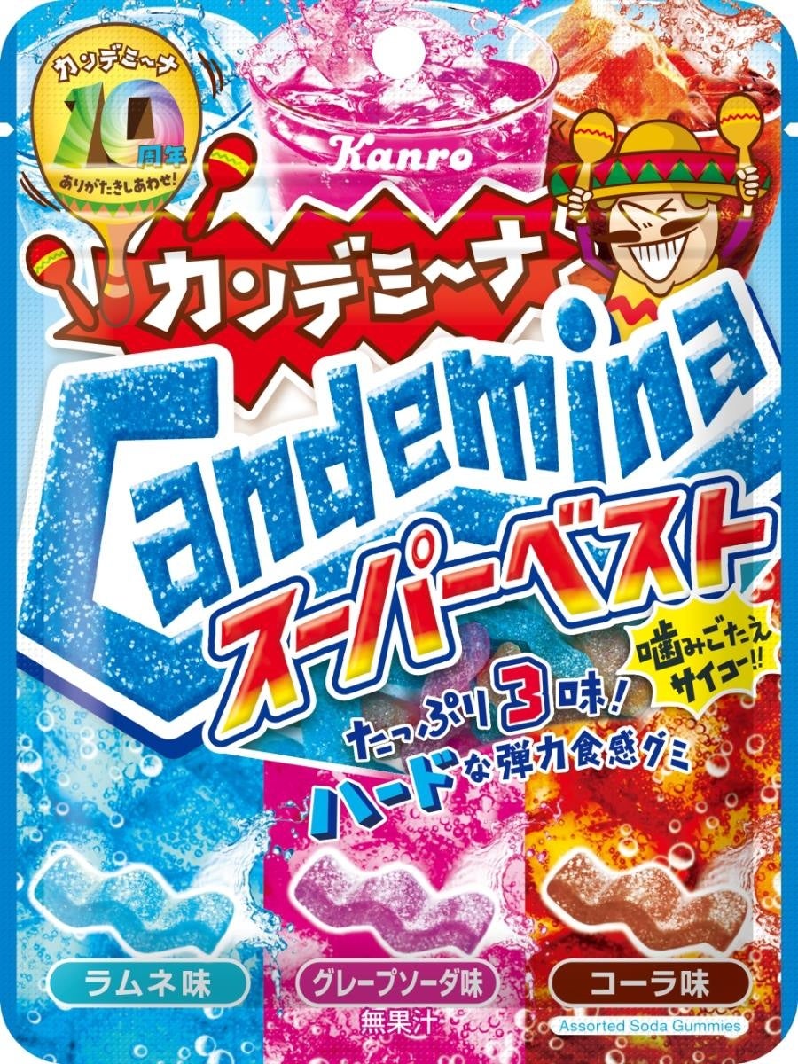 発売から10周年を迎えた「カンデミーナ」は、ユニークな形状でハードな食感を提案する、エンターテインメントグミブランドです。2022年にはブランド年間売上30億円を突破し、2023年には食品産業新聞社主催「第53回食品産業技術功労賞 商品・技術部門」を受賞するなど、カンロにおいてはピュレグミに次ぐグミブランドとして、若い世代やビジネスパーソンを中心にご好評いただいております。