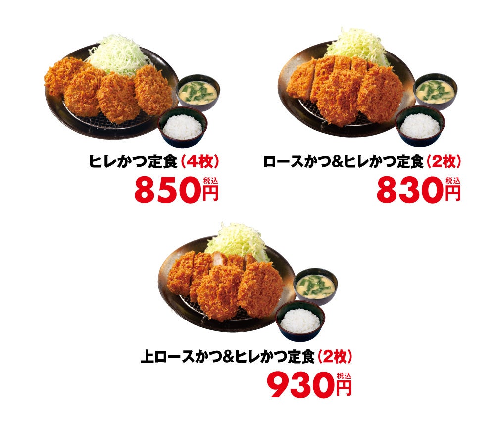 ロースかつ、上ロースかつとのコンボメニューも。ヒレかつが期間限定で1枚増量