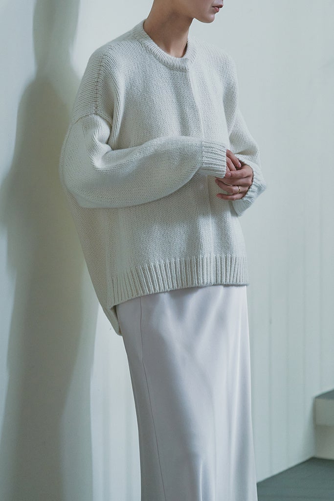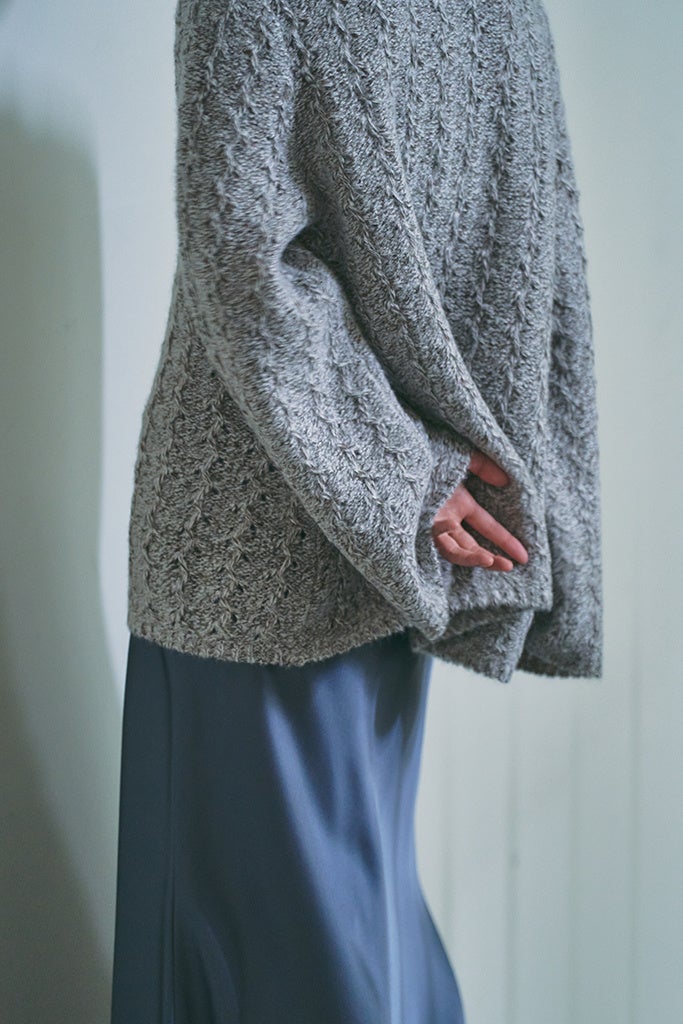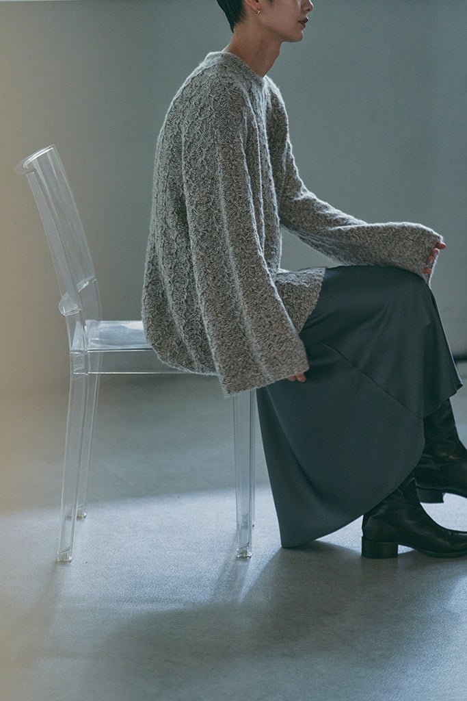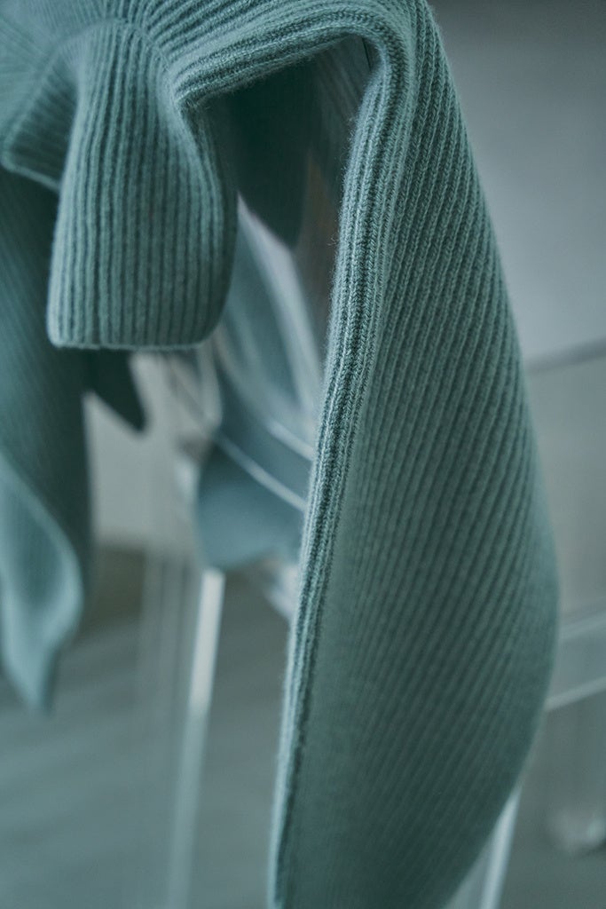 カシミヤとシルクのミックス糸に空気を含み、ふんわりとした質感に仕上げました。