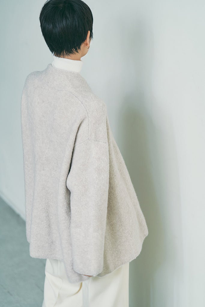 カシミヤとシルクのブークレー糸を使用し光沢感としなやかさを表現した美しい素材に。