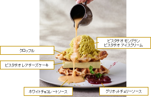 ザ ストリングス 表参道(所在地:東京都港区北青山3-6-8、総支配人:宮田 宏之)では、2階「TAVERN by the green(タバーン・バイ ザ グリーン)」にて、「ピスタチオ モンブラン クロッフル」を、2023年3月7日(火)〜5月8日(月)の期間で提供いたします。