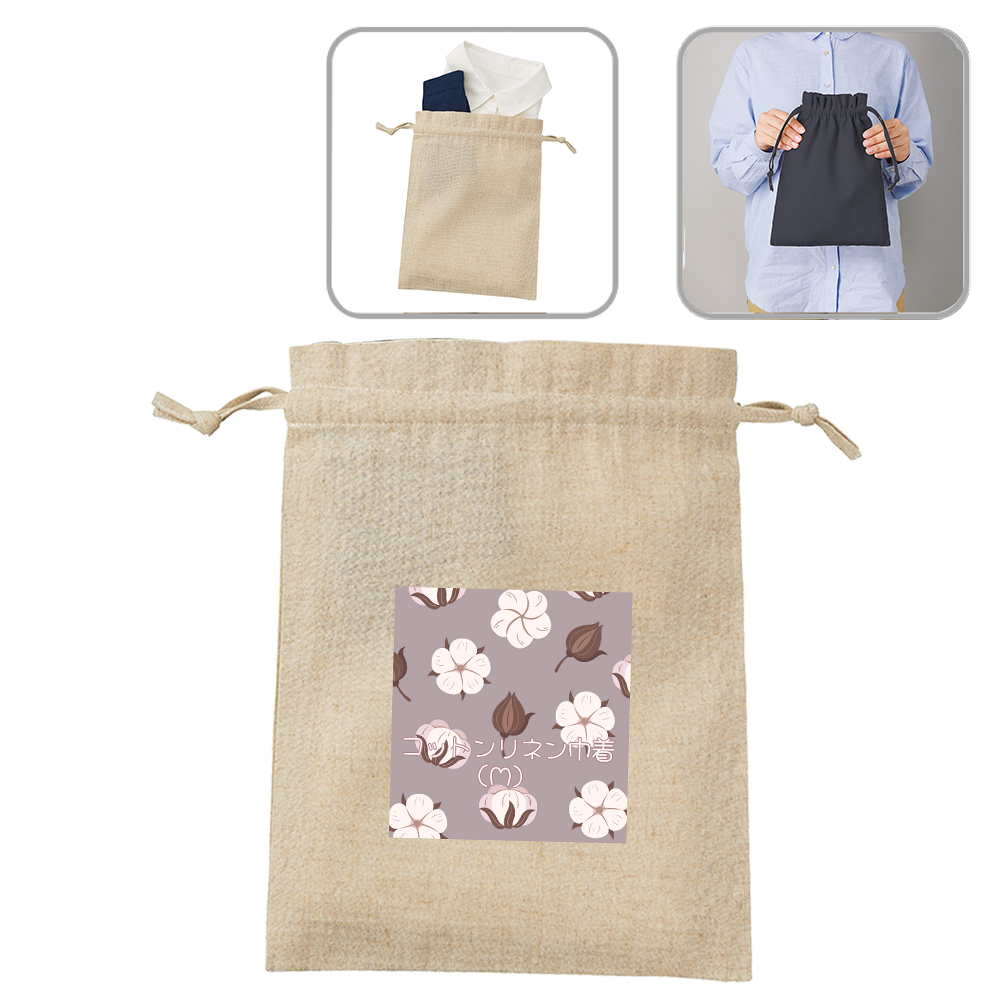 優しい風合いのコットンリネン巾着にオリジナルデザインがプリントできます!
