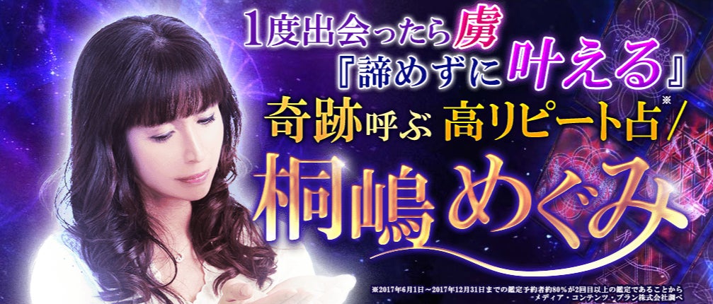 当たる占い|1度出会ったら虜『諦めずに叶える』奇跡呼ぶ高リピート占/桐嶋めぐみの占いがうらなえる本格鑑定で提供開始!