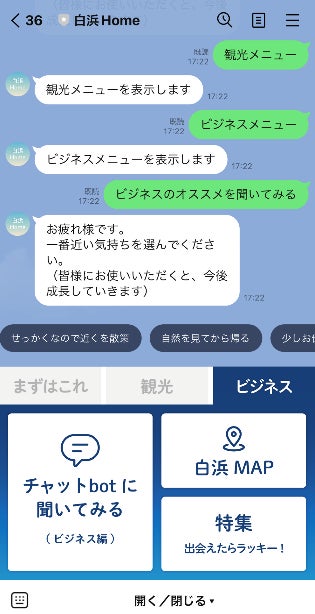 また、南紀白浜エリアではワーケーションにも力を入れているため、ビジネス客向けのメニューを作り、ワークスペースや会議ができる場所の紹介と利用客へのクーポン配布等により幅広い来訪者に向け、南紀白浜の魅力を感じてもらうための施策を実施中です。コンテンツは今後も順次アップデートする予定であり、より地域にある情報とサービスの活用を行ってまいります。