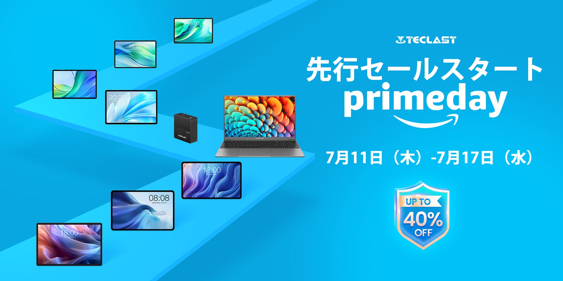 Amazon Prime Day先行セールスタート!7月11日(木)-7月17日(木)、Teclast人気商品お得なクーポンを配布します。最大40% OFF可能!詳しくは下記の内容へ~
