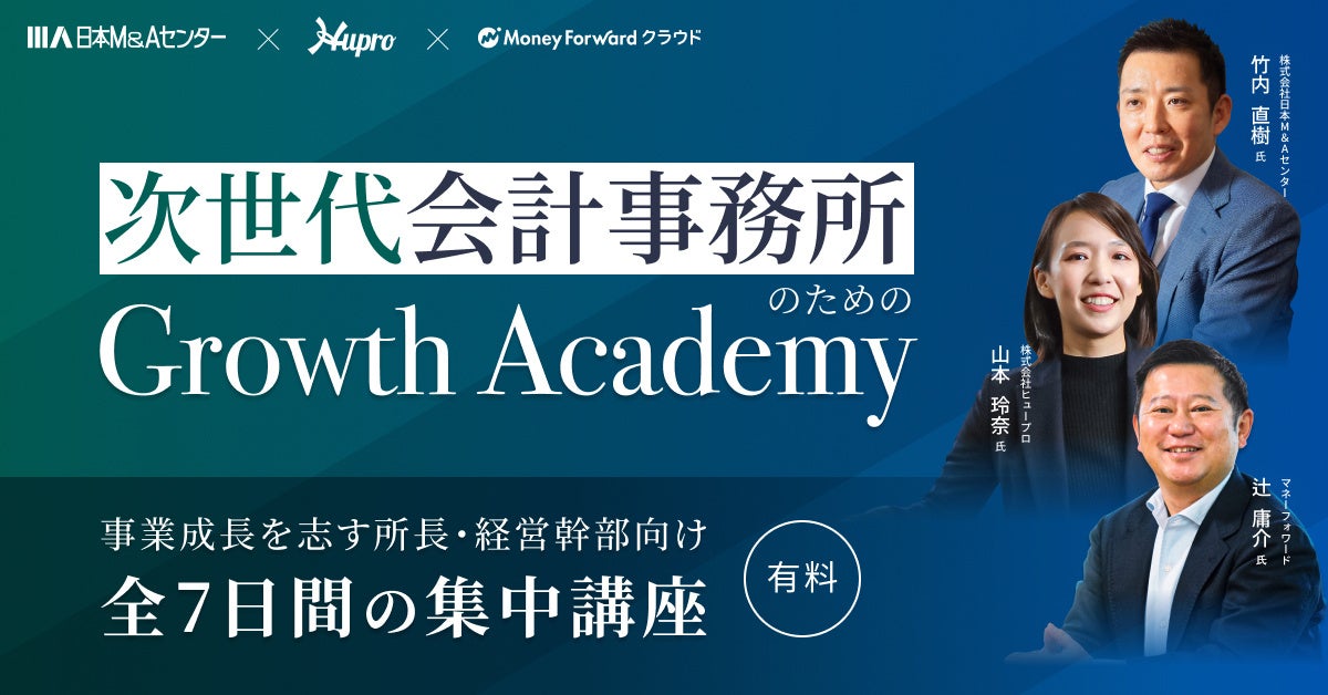 株式会社日本M&Aセンターホールディングス(本社:東京都千代田区 / 代表取締役社長:三宅 卓)の連結子会社である株式会社日本M&Aセンター(以下、日本M&Aセンター / 本社:東京都千代田区 / 代表取締役社長:竹内 直樹)は、株式会社マネ―フォワード、株式会社ヒュープロと共同で会計事務所の経営者・経営幹部層を対象とした全7日間の集中プログラム「次世代会計事務所のためのGrowth Academy」を2025年6月4日(水)より開講します。本プログラムでは実践的な経営戦略を学ぶとともに、会計事務所同士の交流を通じて参加事務所における事業成長を加速させることを目指します。