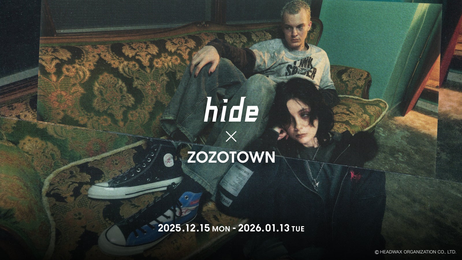 X JAPANの伝説的なギタリストであり、ソロアーティストとしても革新的なサウンドとビジュアルで日本のロックシーンに影響を与えたアーティスト・hideさんとZOZOTOWNがコラボレーションしたアイテムを、12月15日(月)よりZOZOTOWN限定で受注販売します。さらに、本企画限定デザインのhideさんと「CONVERSE(コンバース)」のコラボスニーカーを、同日より予約販売します。