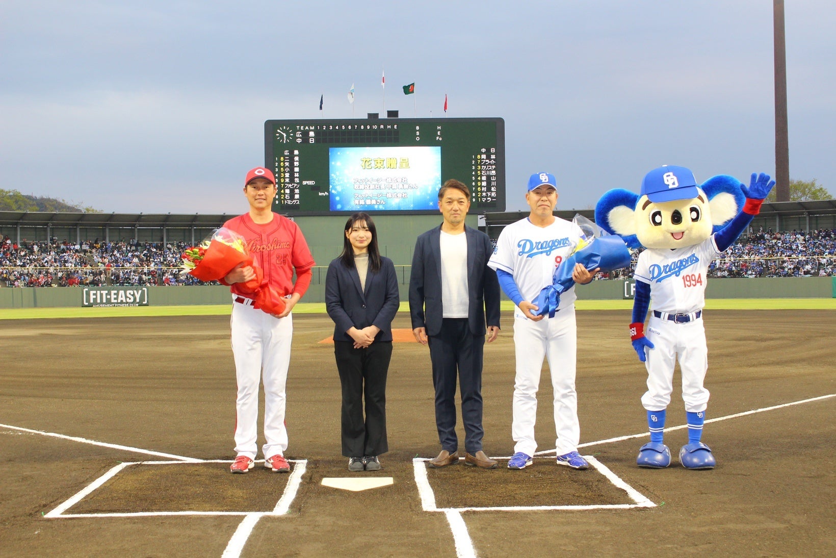◆当社の冠試合となるプロ野球の公式戦にて“花束贈呈”の大役を務める