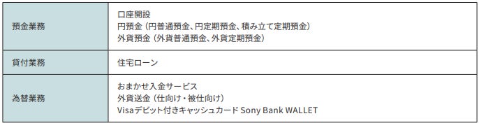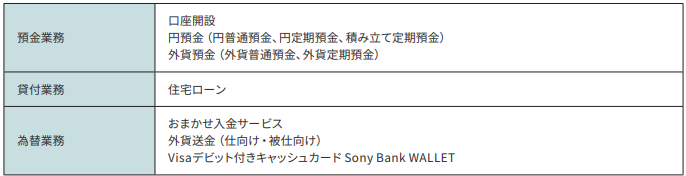 Fanが取り扱うソニー銀行の主な商品・サービス