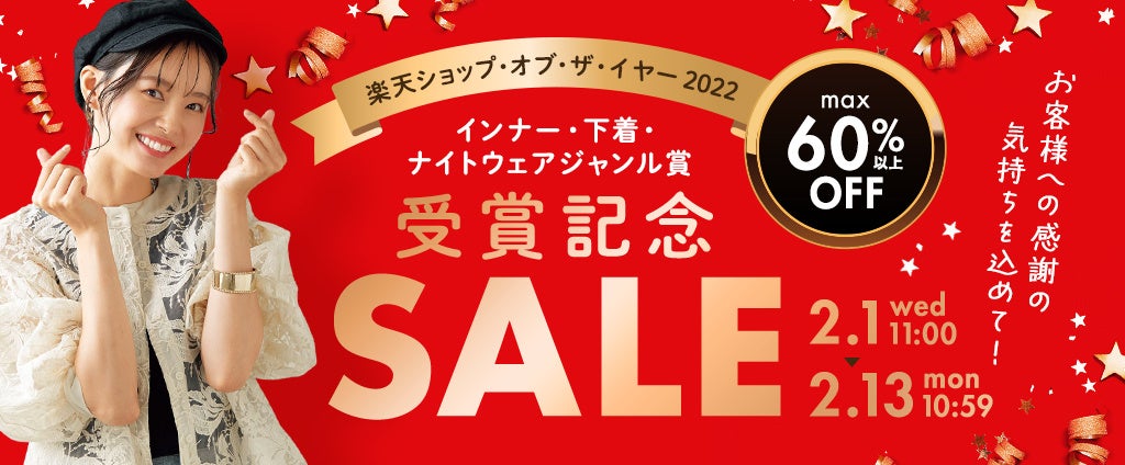 日頃ご愛顧いただいているお客さまへ感謝の気持ちを込めて「受賞記念セール」を2023年2月1日(水)AM11:00より開催いたします。実施期間は、2月13日(月)AM10:59までとなります。詳しくは、『ニッセン楽天市場店』ショップ内の特設ページをご覧ください。