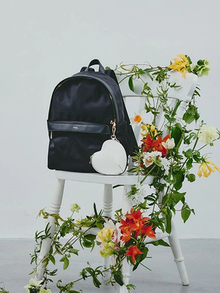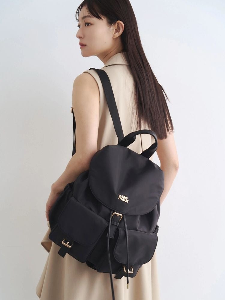 ツヤのあるツイル素材とゴールドパーツが上品な印象の、TONAL別注リュック。
