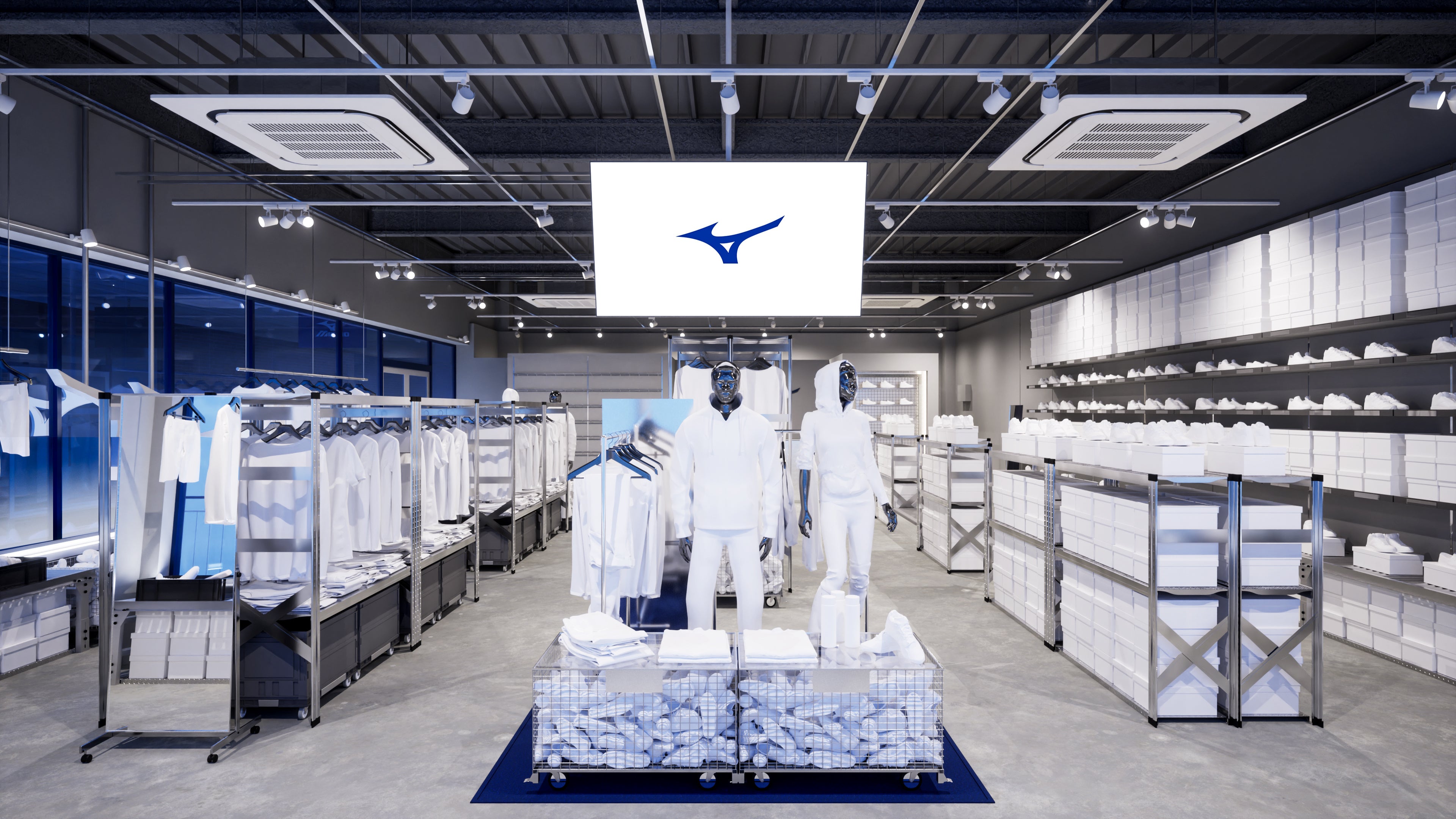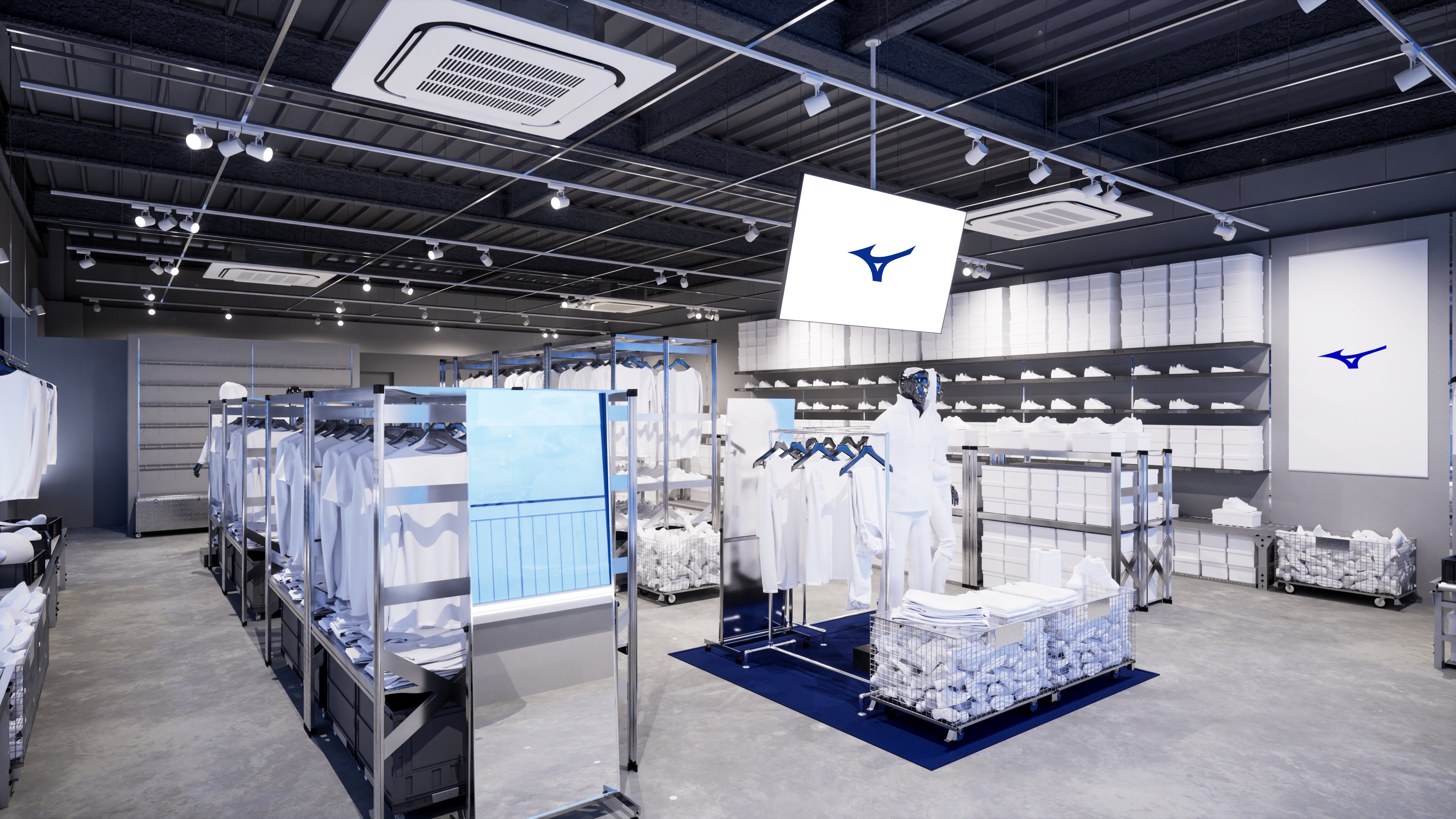 「ミズノショップりんくうプレミアム・アウトレット」では、主にトレーニングアパレルやランニングシューズをはじめとしたスポーツ品を取り扱いながら、スニーカー「ミズノスポーツスタイル」などのライフスタイル品も一部展開します。