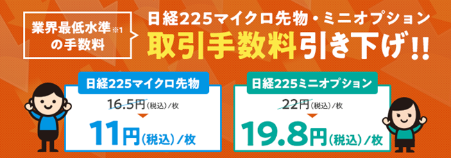 楽天証券、「日経225マイクロ先物」と「日経225ミニオプション」の取引手数料を業界最低水準に引下げ!