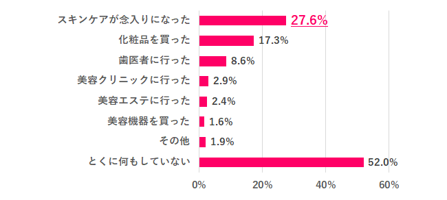 ★美容にまつわる行動は「スキンケアが念入りになった」「化粧品を買った」
