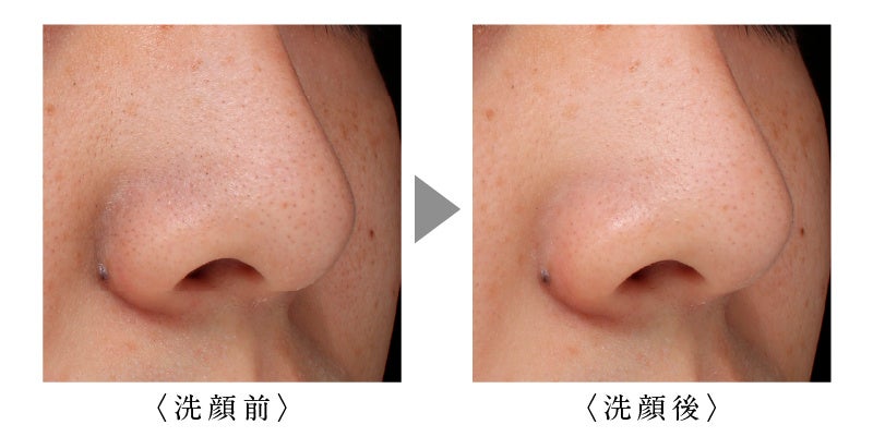 炭や泥(カオリン)を配合した黒い吸着泡が肌に密着し、毛穴の黒ずみや汚れを落とします。