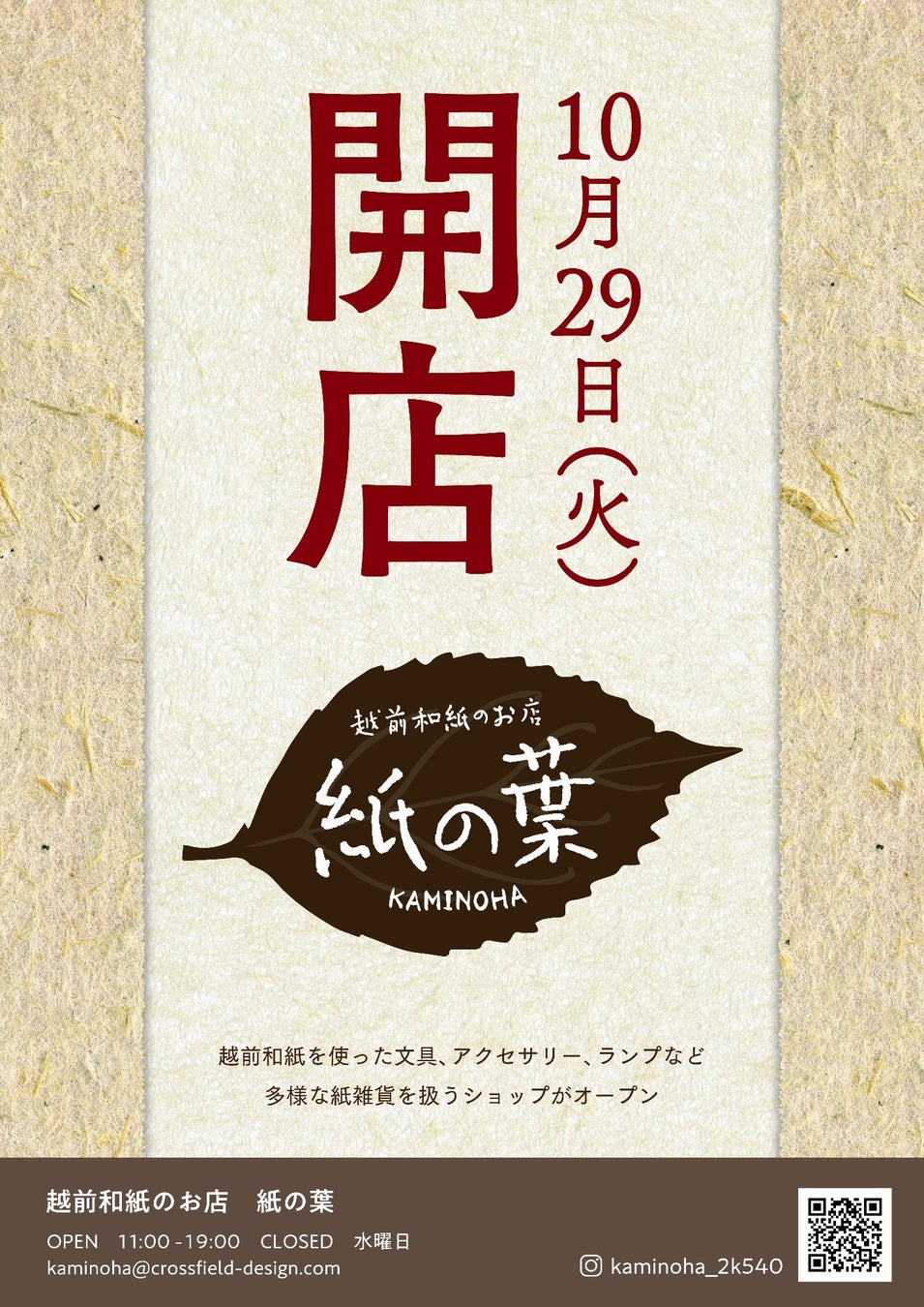 『紙の葉』は、クロスフィールド株式会社(東京都千代田区/代表取締役:有定静子)による、越前和紙の雑貨専門店です。代表のゆかりの地である福井県越前市の魅力的伝統工芸『越前和紙』。そんな『伝統ある越前和紙を国内外に広く伝えたい』という想いから、和紙専門のアンテナショップ兼常設展示ショップとしてオープンいたします。越前和紙に印刷とデザインの技術を融合させたバラエティ豊かな雑貨や和紙と木の工芸品を提供し、皆さまの暮らしに彩を添えます。