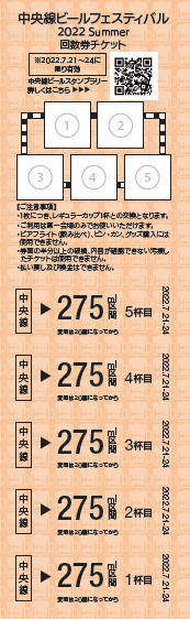 ■利用方法:事前購入時に電子チケットを発行。当日受付にて購入画面をご提示頂くと、回数券及び「中央線ビアルーレット」参加チケットに引き換えます。