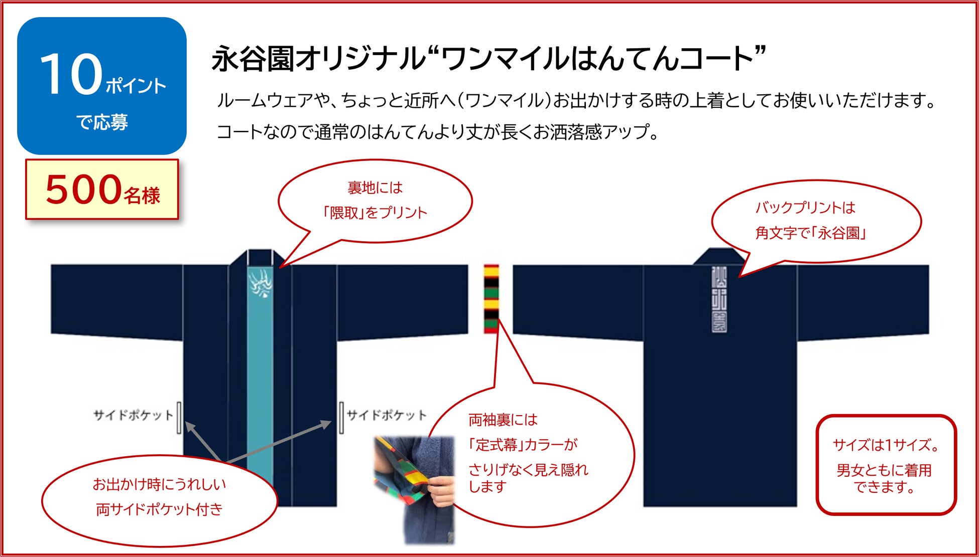 ✓景品 : 10ポイント=ワンマイルはんてんコート(500名様)