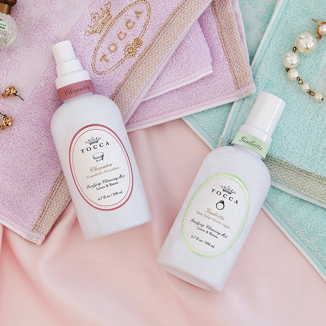 生活のあらゆるシーンでTOCCABeautyの香りを楽しみながら、布製品や衣類の消臭・除菌ができるリネン&ルームスプレー。室内空間にも使えます。