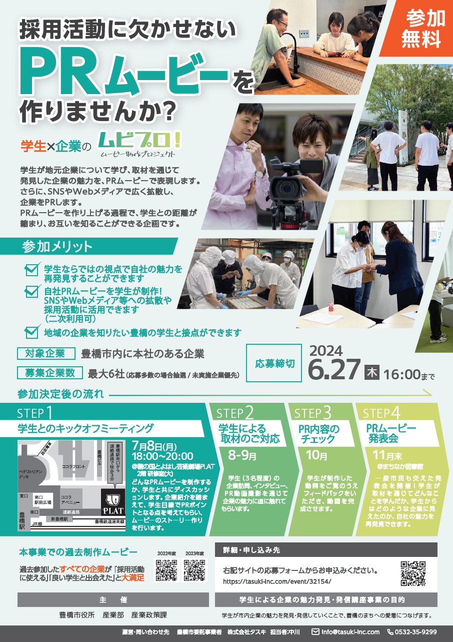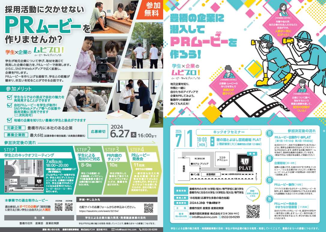 学生ならではの視点で市内企業の魅力を発信する!豊橋市では学生×企業のPRムービー制作プロジェクトに参加する企業・学生を募集します