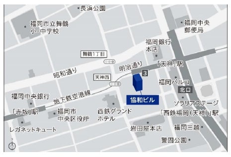 この度、行政主導で行われる福岡市天神地区における「天神ビッグバン」エリア内に存する「福岡天神センタービル」から、明治通りを挟んだ向かいの天神二丁目ブロックに存する「協和ビル」3階へ移転いたします。