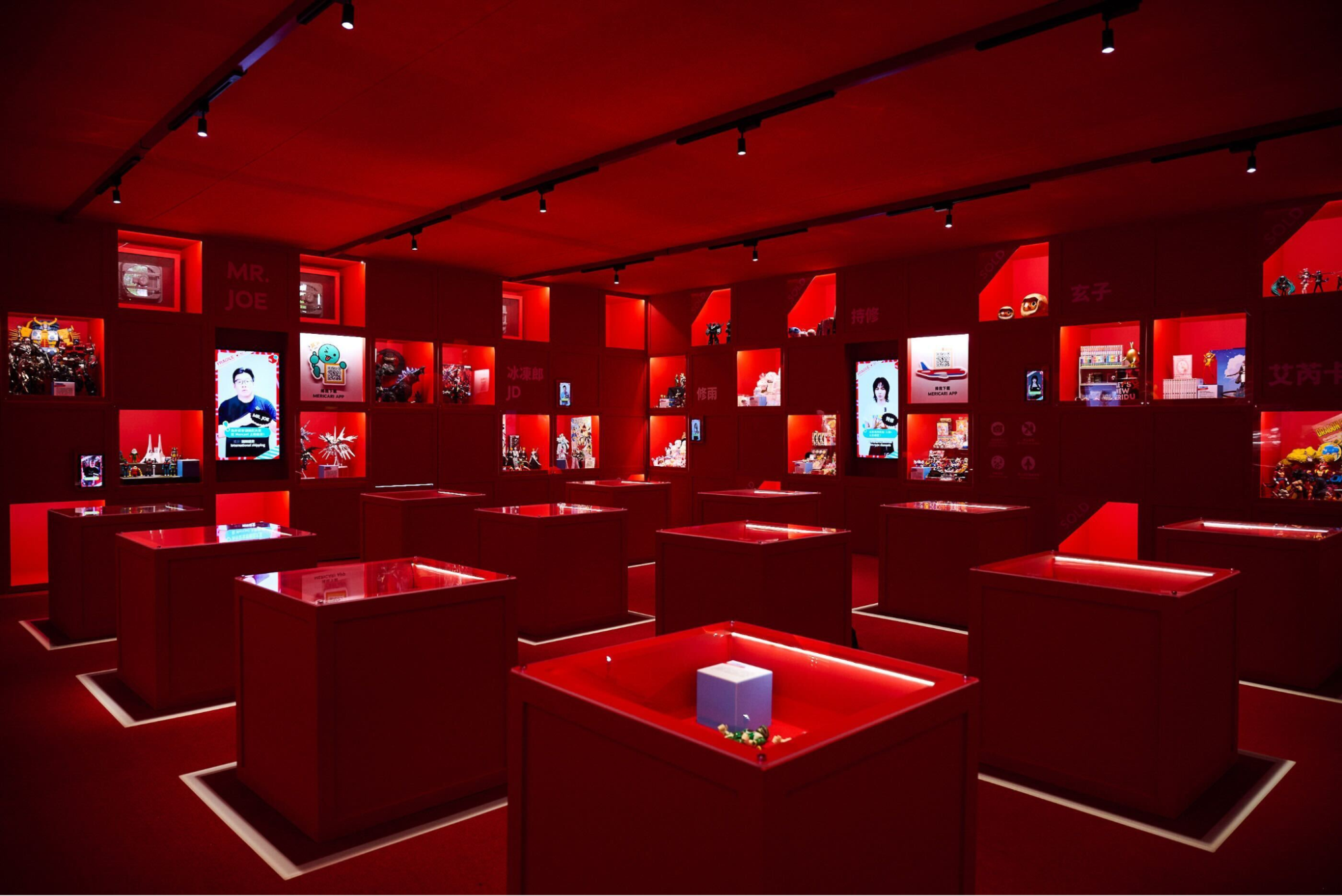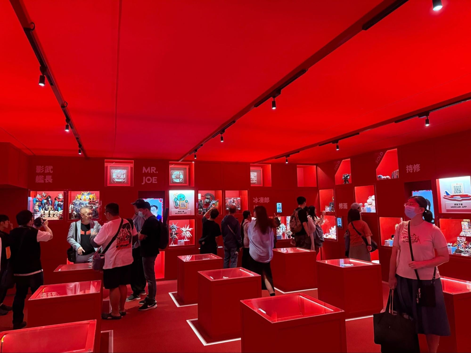 会場全体は、「メルカリ」のシンボルである赤い箱をモチーフにした赤の空間に統一され、まるでアプリの中の宝の迷宮に迷い込んだかのような、神秘的なイマーシブ空間を演出しました。この非日常的な空間で、来場者は宝探しミッション「秘宝任務」に挑戦できます。