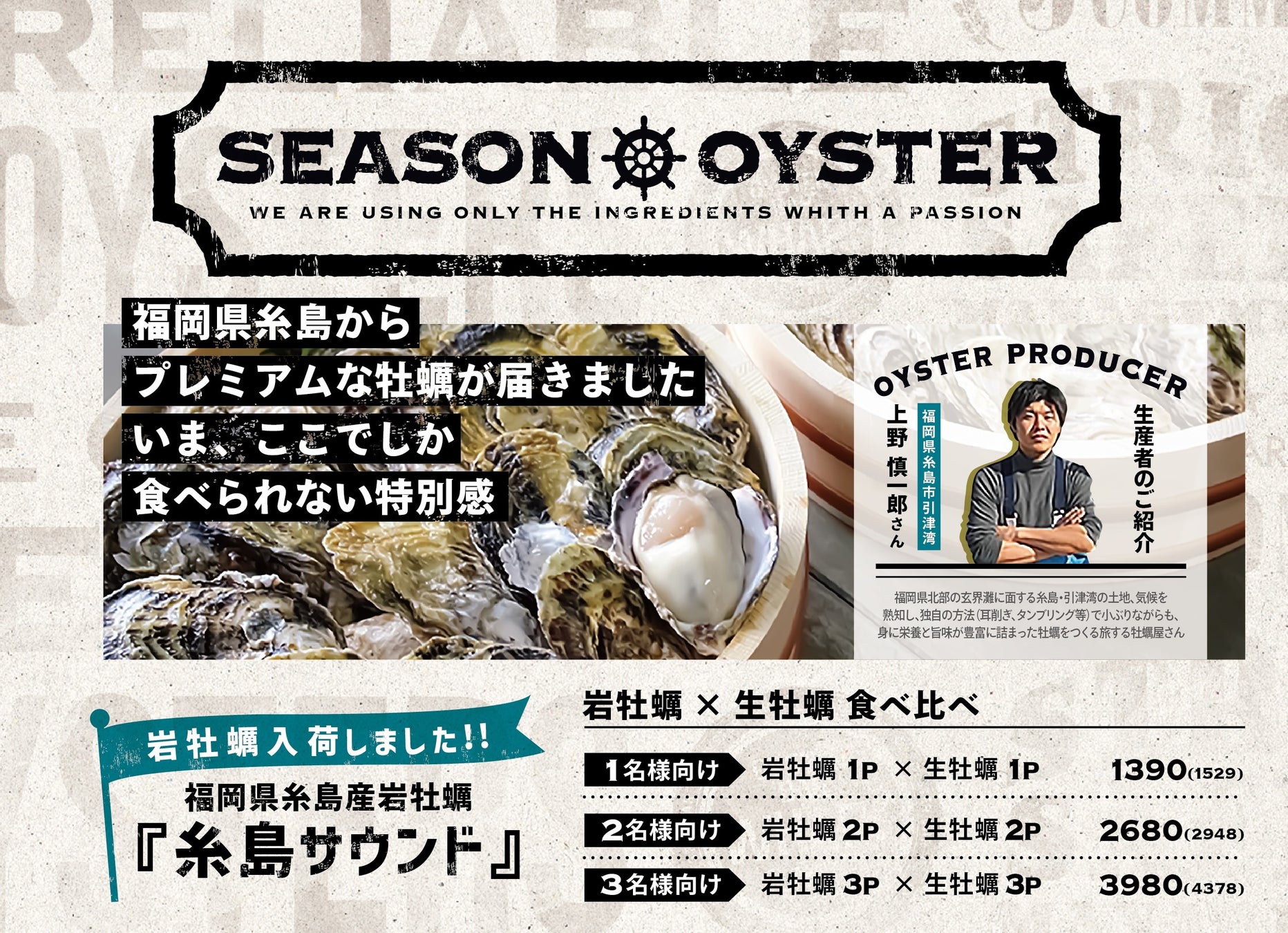 いま、世界でここでしか食べることができない希少価値の高い天然真牡蠣が届きました!福岡県糸島産 天然真牡蠣『いとしま』をオイスターバーwharf新宿店で5/2より販売開始!