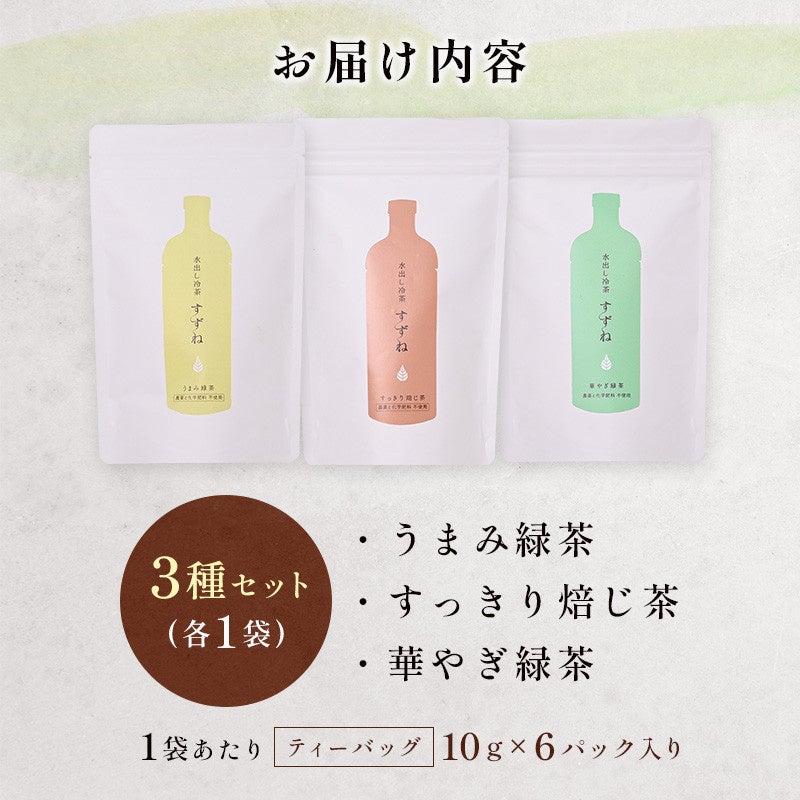 □返礼品名:<有機栽培>水出し冷茶「すずね」3種セット ゆっくり水出し 贅沢コールドブリュー
