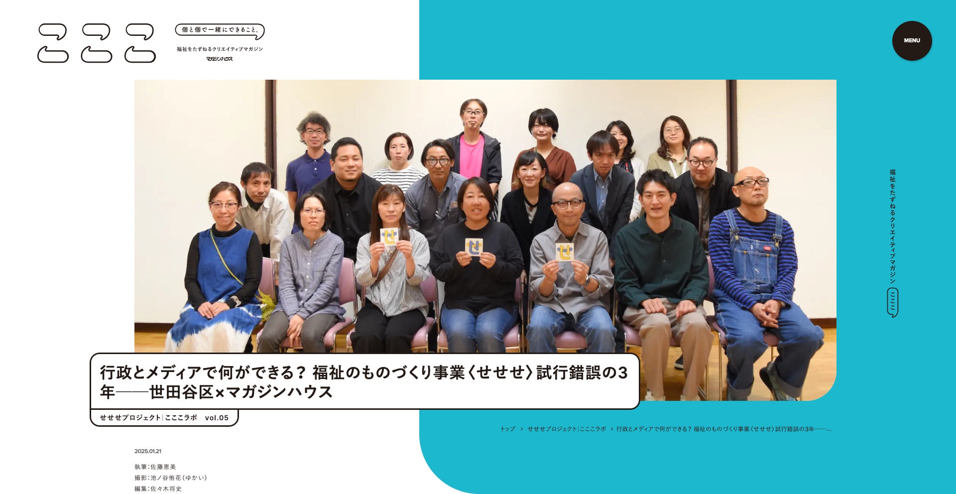株式会社マガジンハウス(以下マガジンハウス、本社:東京都中央区、代表取締役社長:鉄尾周一)は、ウェブメディア「福祉をたずねるクリエイティブマガジン〈こここ〉」と世田谷区の共同事業「せせせプロジェクト」( https://co-coco.jp/series/lab_sesese/ )を2022年より展開しています。