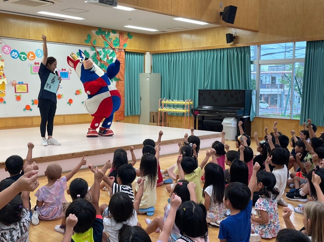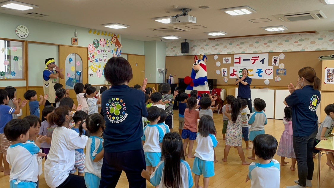 「おおきなわ」の活動の一環として行っている「ゴーディーによる訪問・交流会」にて、9月はホームタウン沖縄市内と宜野湾市、うるま市の保育園・こども園を訪問しました。ご協力いただいた各園の皆さま、ありがとうございました。
