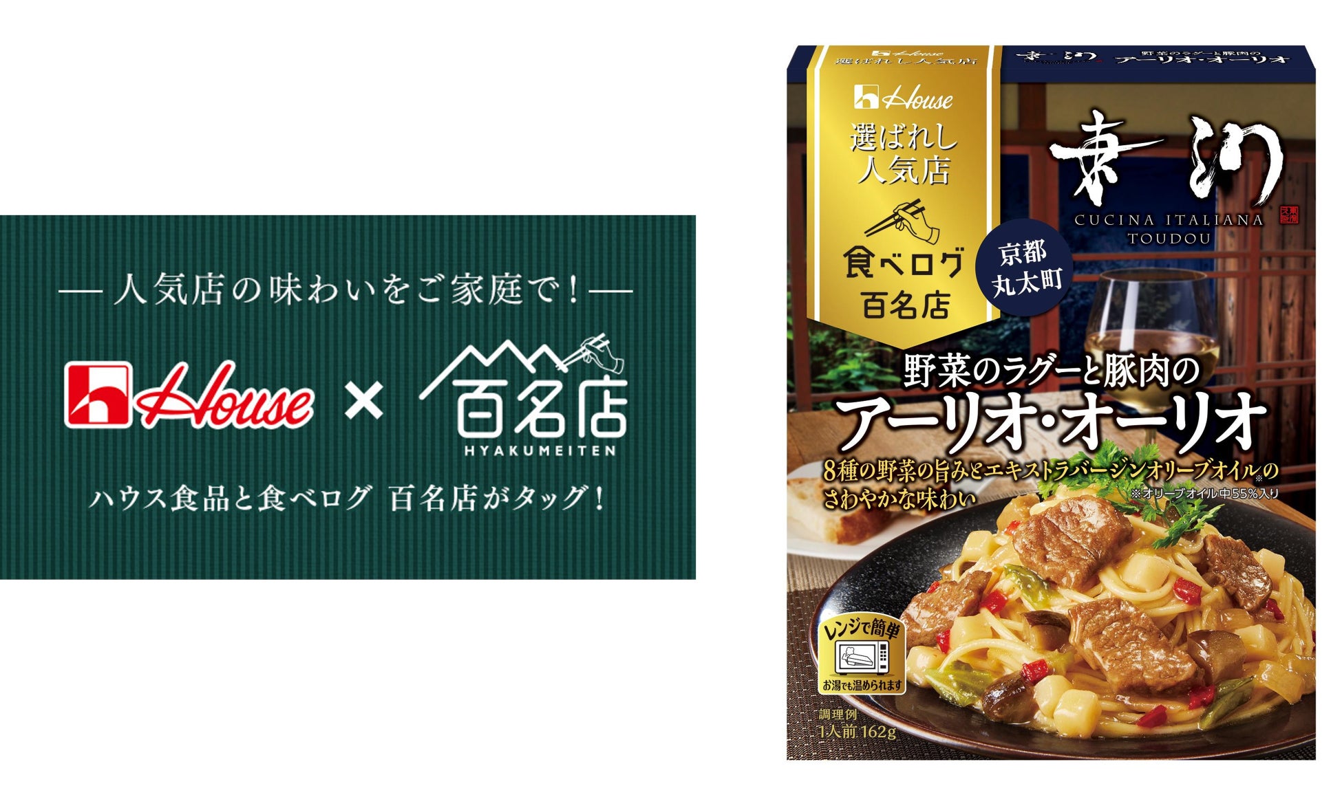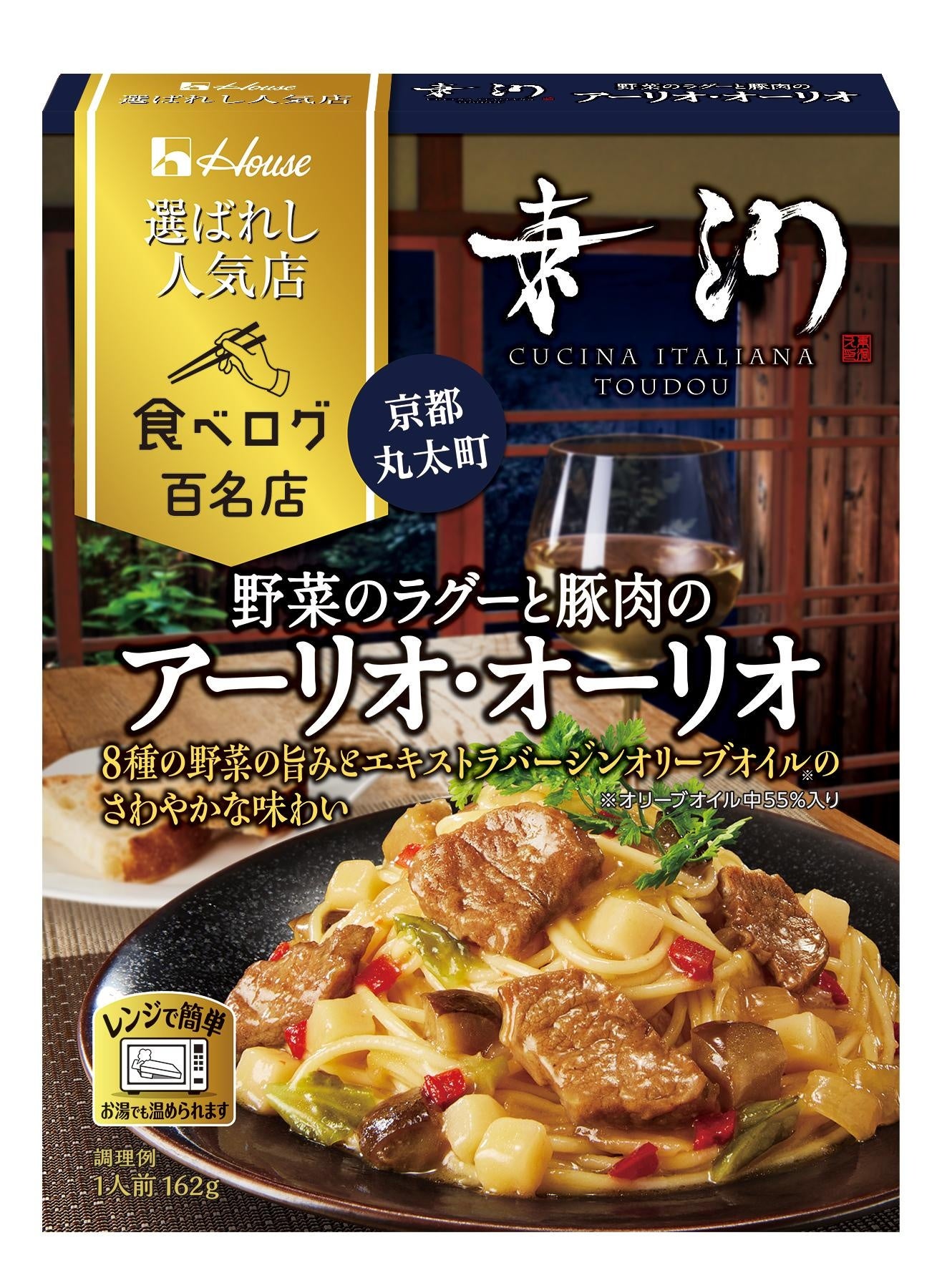 (1)株式会社カカクコムが運営するレストラン検索・予約サイト「食べログ」がジャンルごとに高い評価を集めた100店を発表するグルメアワード「食べログ 百名店」に選出された人気店の味わいを再現し、現地に行かずに自宅で手軽に楽しむことができる「選ばれし人気店」シリーズ。2018年7月の誕生から、カレー 百名店10店およびイタリアン 百名店2店と共同開発を行い、シリーズ累計売上約3,400万個の※1当社の主力レトルト製品です。今回は、「食べログ イタリアン WEST 百名店 2023」選出店である京都・丸太町にあるイタリアンレストラン「Cucina Italiana 東洞(クッチーナ イタリアーナ トウドウ)」の人気メニュー「野菜のラグーと豚肉のアーリオ・オーリオ」をレトルトパスタソースで再現。ご家庭のレンジで温めるだけで手軽に楽しめます。