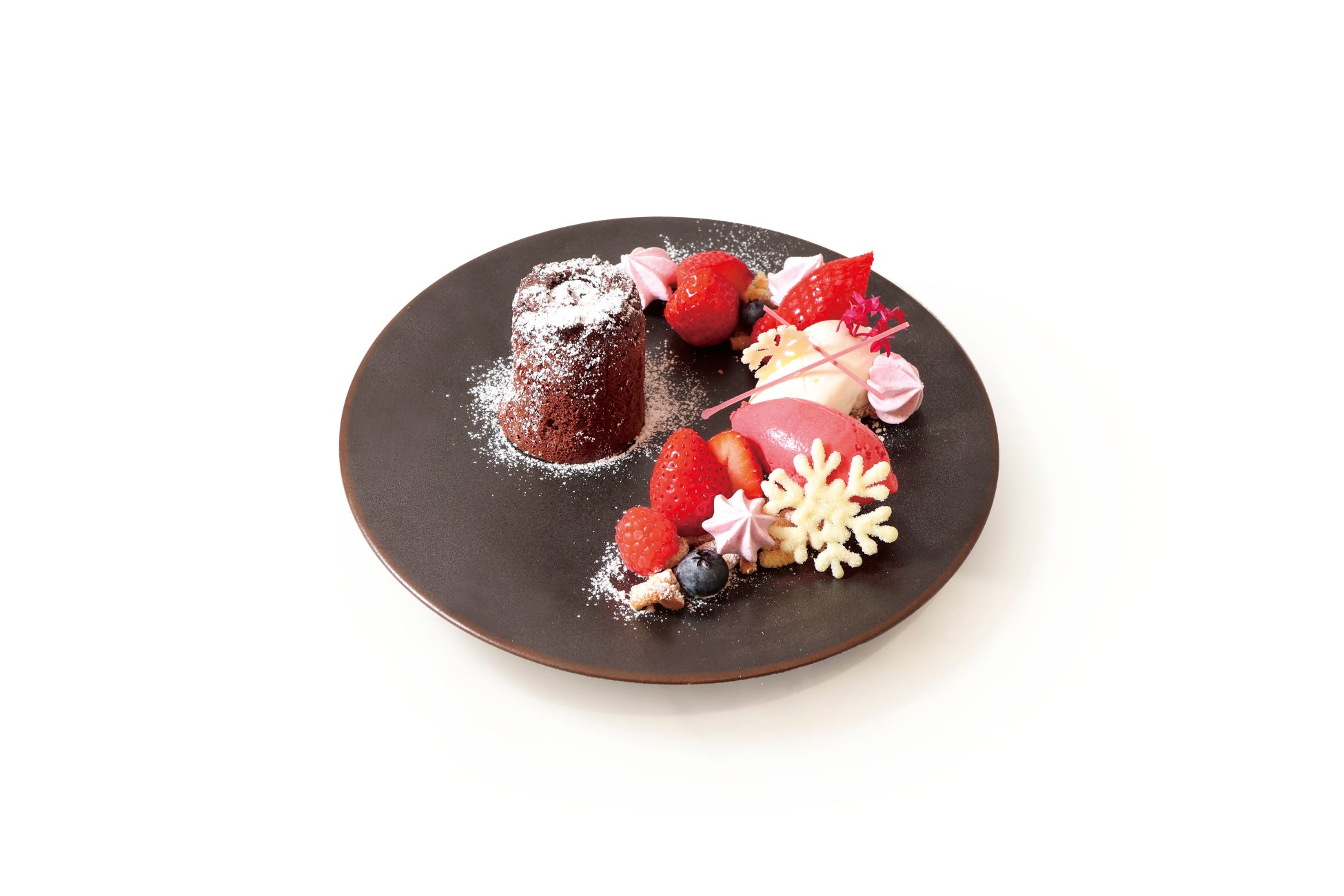 温かいガトーショコラの中に、酸味のあるベリーソースを忍ばせ、