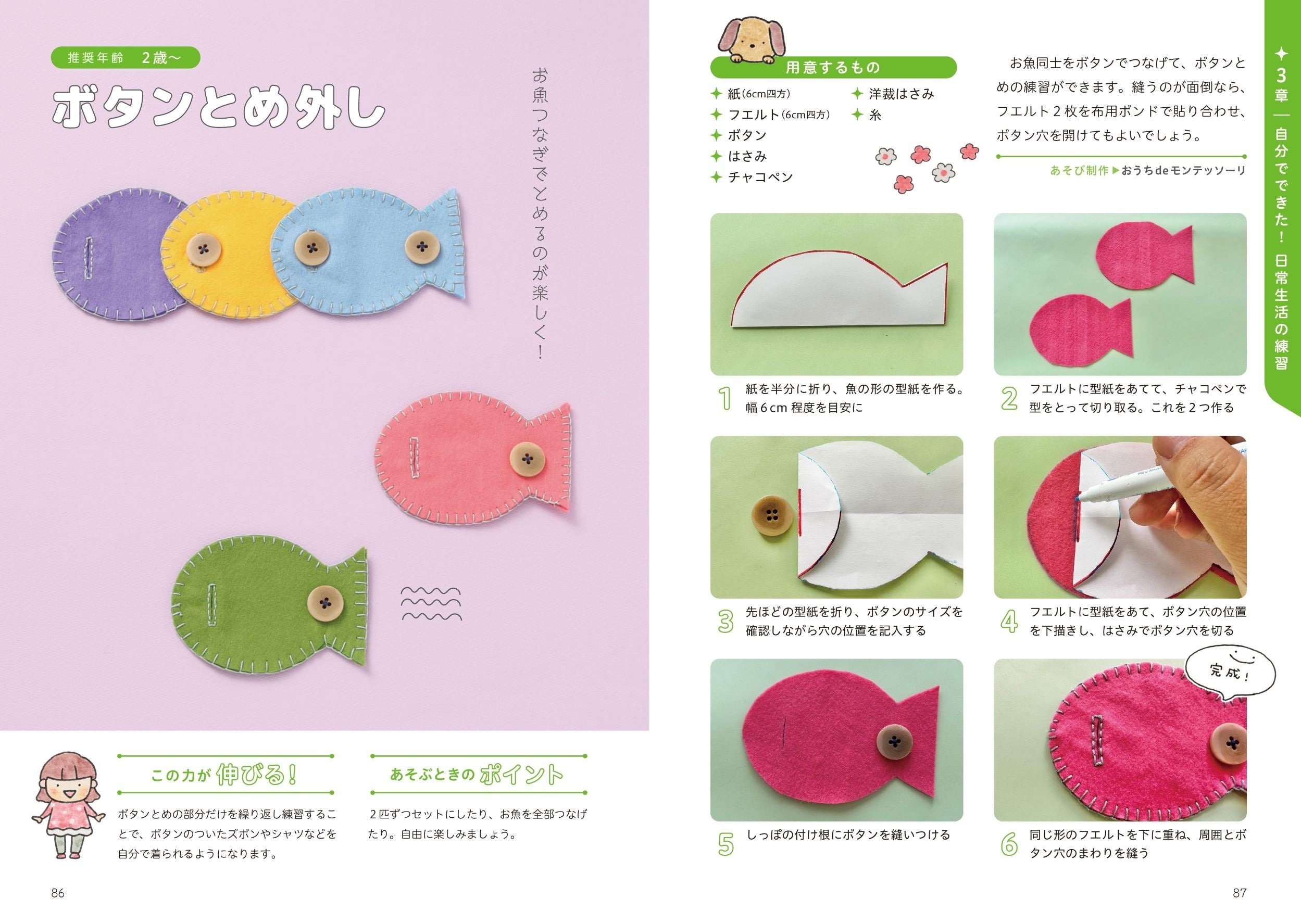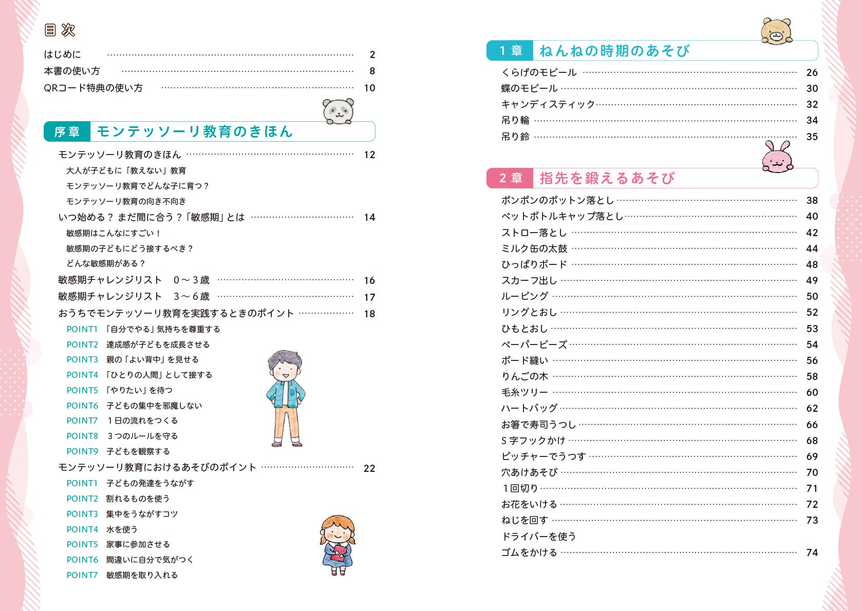 本書のあそびを通して、モンテッソーリ教育の考え方に触れ、その一部を取り入れるきっかけとなったらと思います。