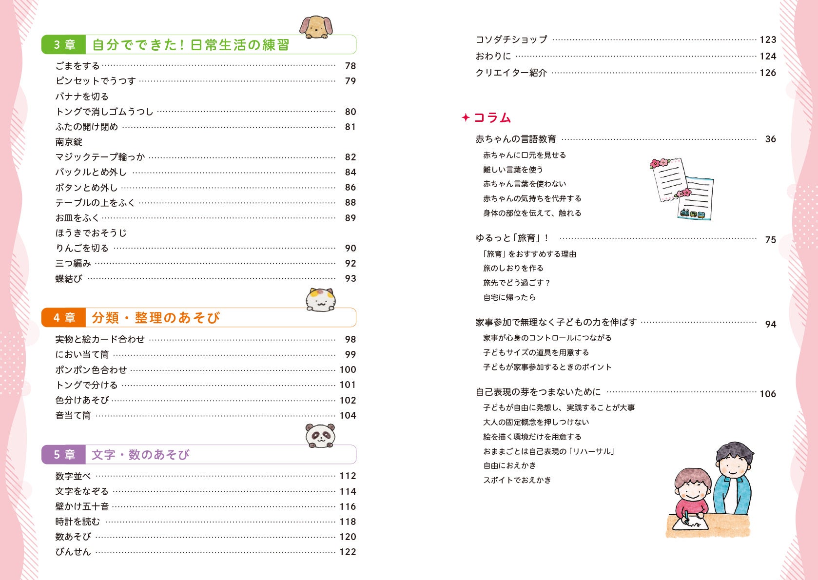 子どもの指先を育てる、日常生活の練習をするなど、子どもの成長をサポートするあそびが満載。おうちで実践できるアイデアいろいろ!